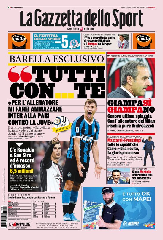 IL BUONGIORNO DE ‘IL MILANISTA’ – Ecco le prime pagine dei maggiori quotidiani sportivi