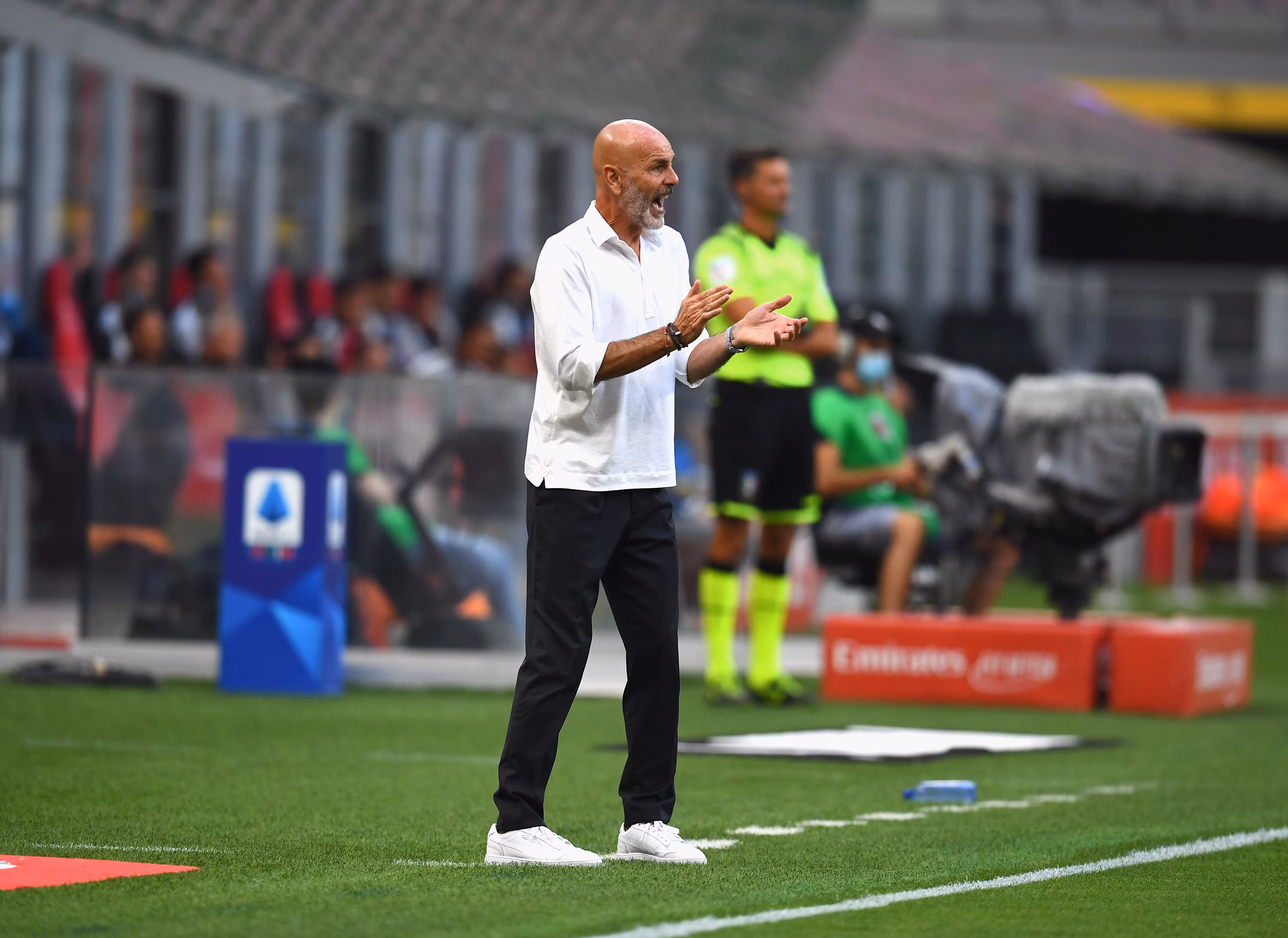 MILAN, ITALY - JULY 15: Head coach of AC Milan, Stefano Pioli reacts during the Serie A match between AC Milan and Parma Calcio at Stadio Giuseppe Meazza on July 15, 2020 in Milan, Italy. (Photo by Claudio Villa/Getty Images)