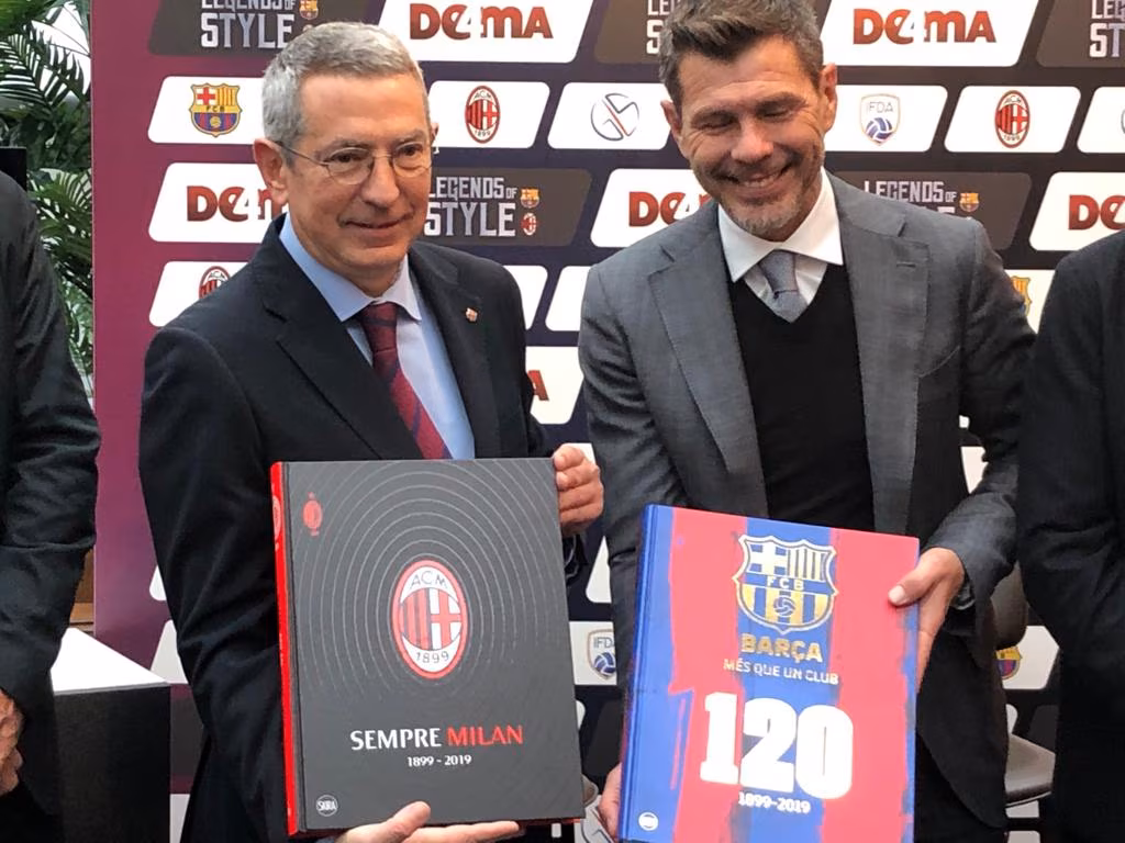 MILANO – Oggi le delegazioni di Barcellona e Milan si sono incontrate, a Milano, per celebrare i 120 anni dalla fondazione delle due società. Per i blaugrana erano presenti: Pau Vilanova (presidente commissione attività sociali della squadra catalana), Miguel Angel Nadal e Albert Ferrer (ex calciatori del club spagnolo). Mentre per i rossoneri erano presenti: Demetrio Albertini, Zvonimir Boban, Franco baresi, Mauro Tassotti, Daniele Massaro, Stefano Eranio, Gianluca Zambrotta, Luca Antonini, Francesco Coco e Cristian Zaccardo. Milan e Barcellona hanno dato vita ad un tour internazionale di partite tra le leggende dei due club. Il Chief Football Officer della società meneghina e Vilanova si sono scambiati i libri delle due squadre (Sempre Milan e 120 Years Mes que un Club).