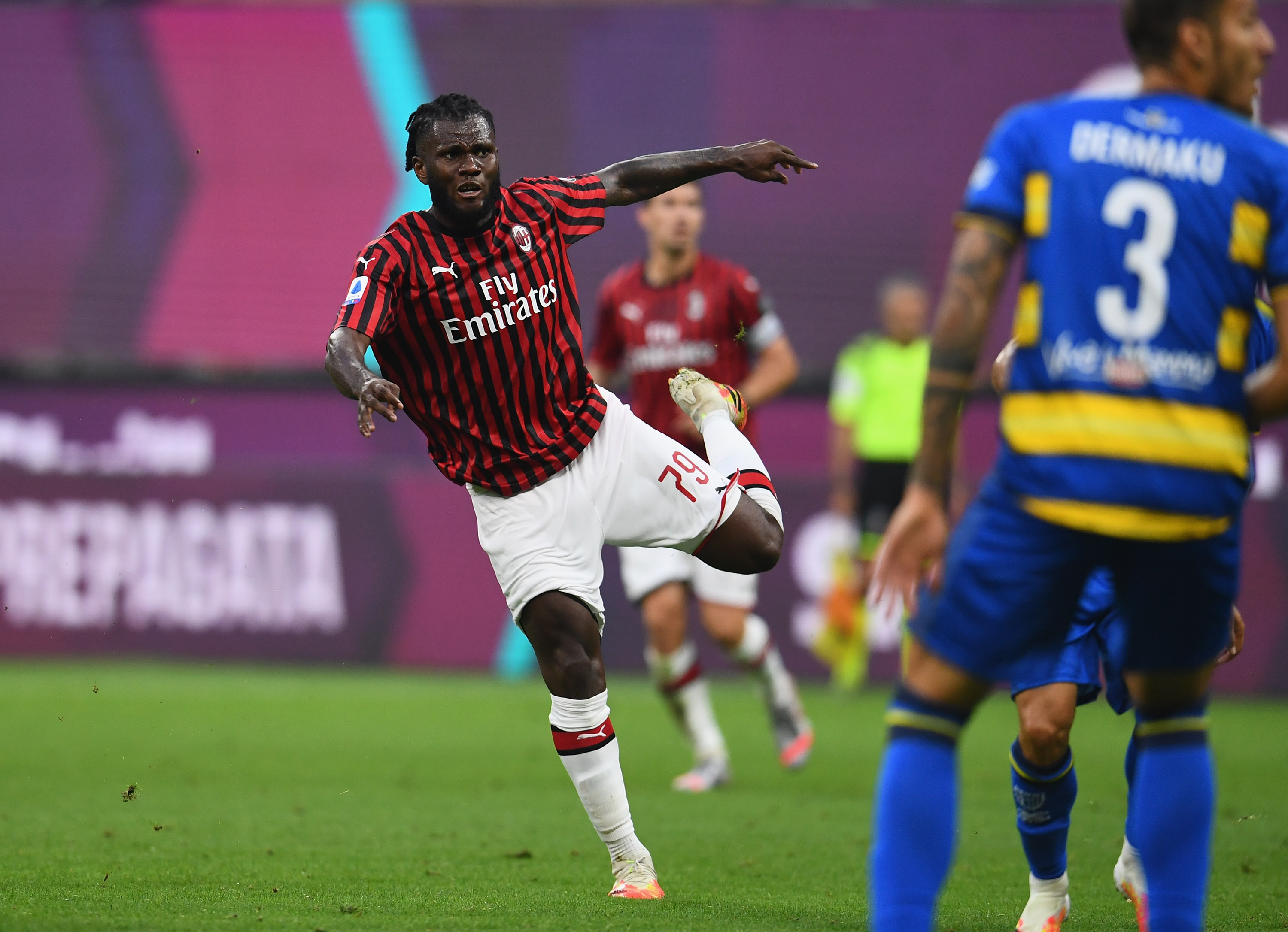 MILAN, ITALY - JULY 15: Franck Yannick Kessié of AC Milan scores the first goal during the Serie A match between AC Milan and Parma Calcio at Stadio Giuseppe Meazza on July 15, 2020 in Milan, Italy. (Photo by Claudio Villa/Getty Images)