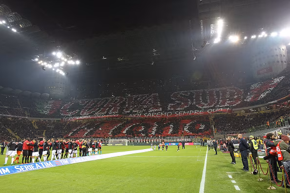 MILAN, ITALY - OCTOBER 22: The AC Milan fans show their support before the Serie A match between AC Milan and Juventus FC at Stadio Giuseppe Meazza on October 22, 2016 in Milan, Italy. (Photo by Marco Luzzani/Getty Images)