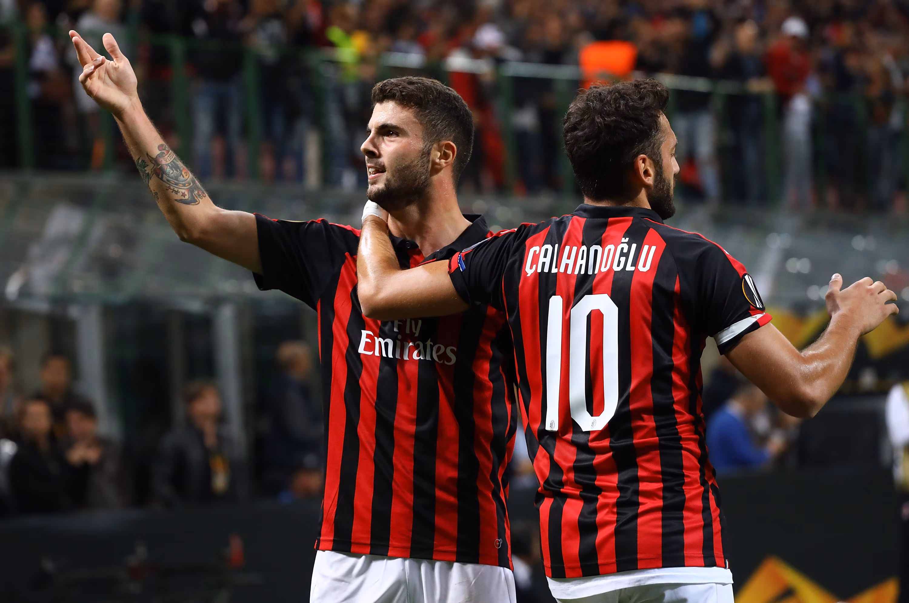 Hakan Calhanoglu, 24 anni, abbraccia Patrick Cutrone, 20.