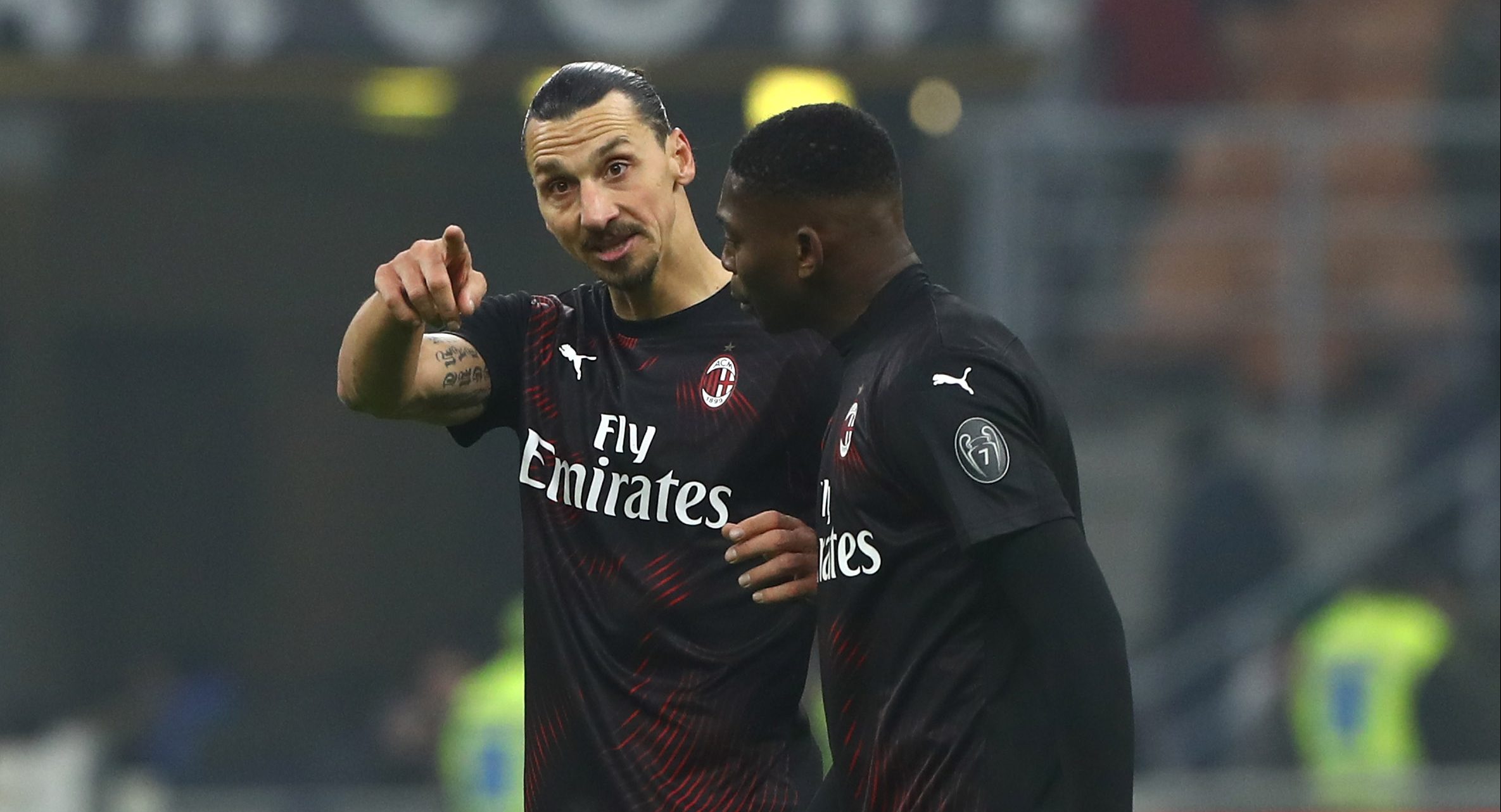 Zlatan Ibrahimovic, 38 anni, dà indicazioni al 20enne Rafael Leao.