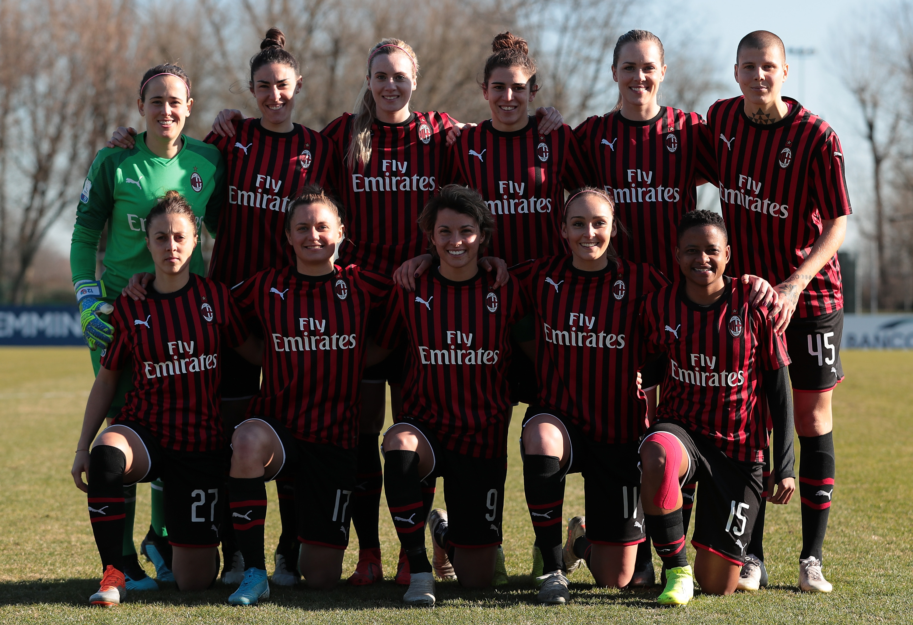 MILAN, ITALY - JANUARY 20: AC Milan team line up prior to the Women Serie A match between AC Milan and AS Roma on january 20, 2020 in Milan, Italy. (Photo by Emilio Andreoli/Getty Images)