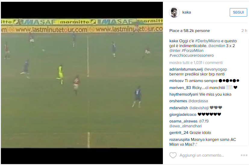 Il post completo sul profilo ufficiale Instagram di KakÃ