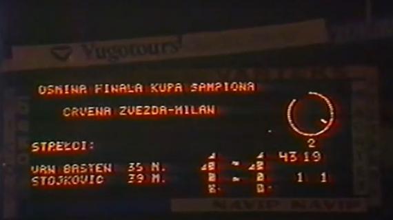 La gara si rigiocò il giorno successivo, il 10 novembre 1988, ripartendo, come da regolamento dell’epoca, dallo 0 a 0. Il Milan andò in vantaggio con Van Basten, dopo che l’autogoal di Vasiljevic, difensore degli slavi, non era stato convalidato, ingiustamente. Stojkovic dopo pochi minuto firmò il pari e per decidere il passaggio del turno si arrivò ai calci di rigore: Giovanni Galli si esalta parandone due, compreso quello del futuro rossonero Savicevic, mentre tra i rossoneri segnarono Baresi, Van Basten Evani e Rijkaard.