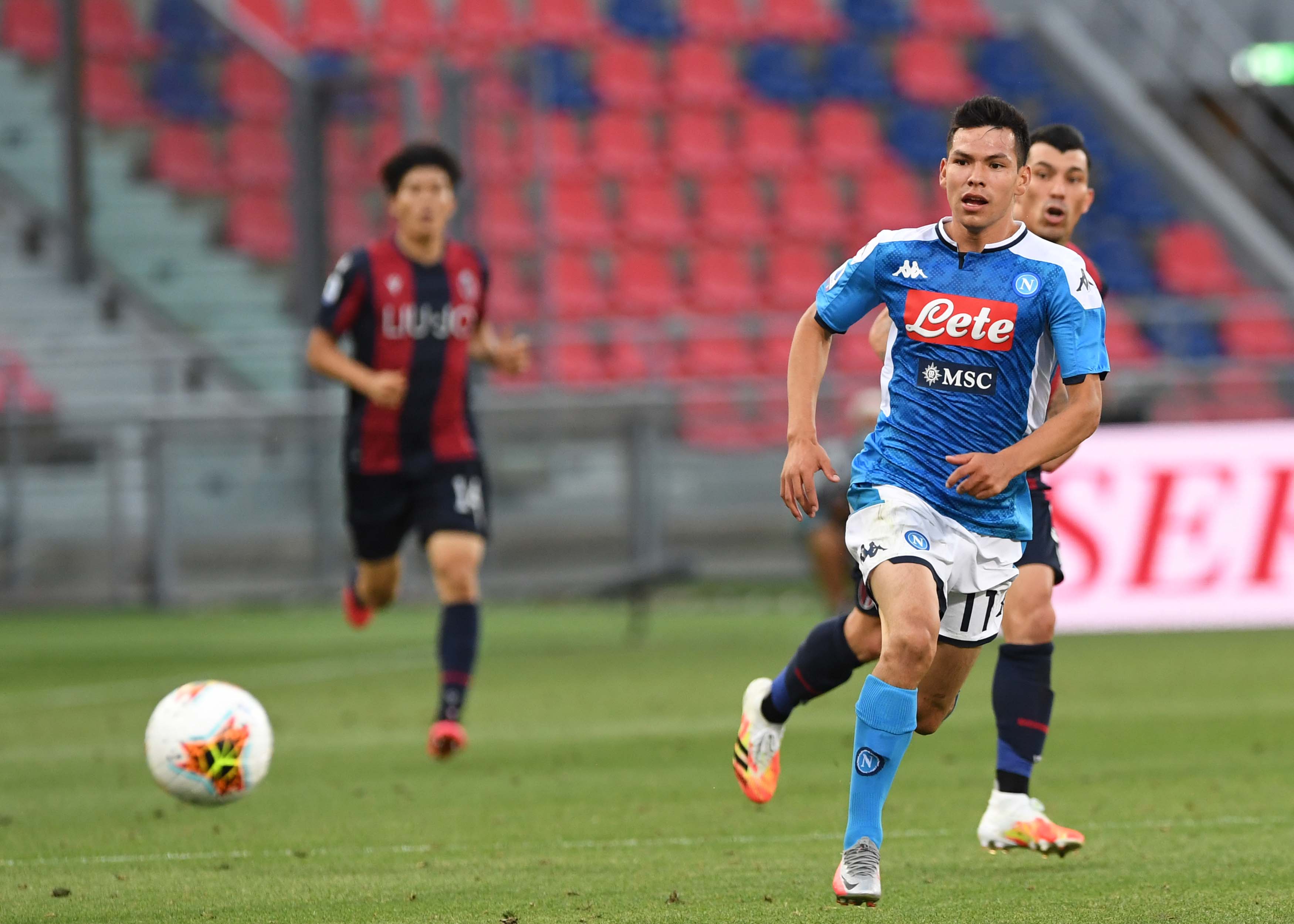 BOLOGNA, ITALY - JULY 15: Hirving Lozano of Napoli in actio during the Serie A match between Bologna FC and SSC Napoli at Stadio Renato Dall'Ara on July 15, 2020 in Bologna, Italy. (Photo by SSC NAPOLI/SSC NAPOLI via Getty Images)