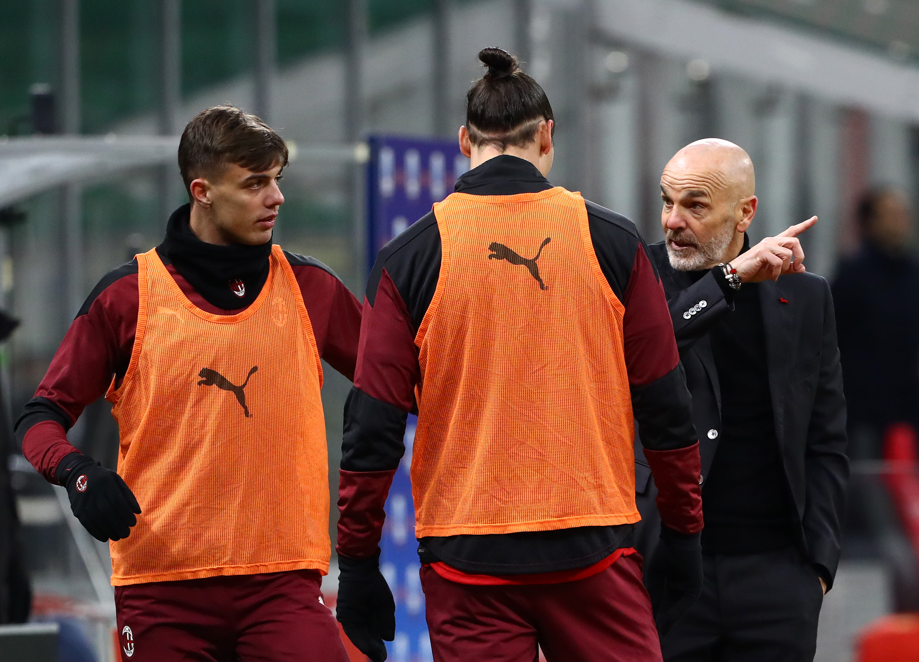 Le indicazioni di Pioli a Ibrahimovic sotto gli occhi di Daniel Maldini