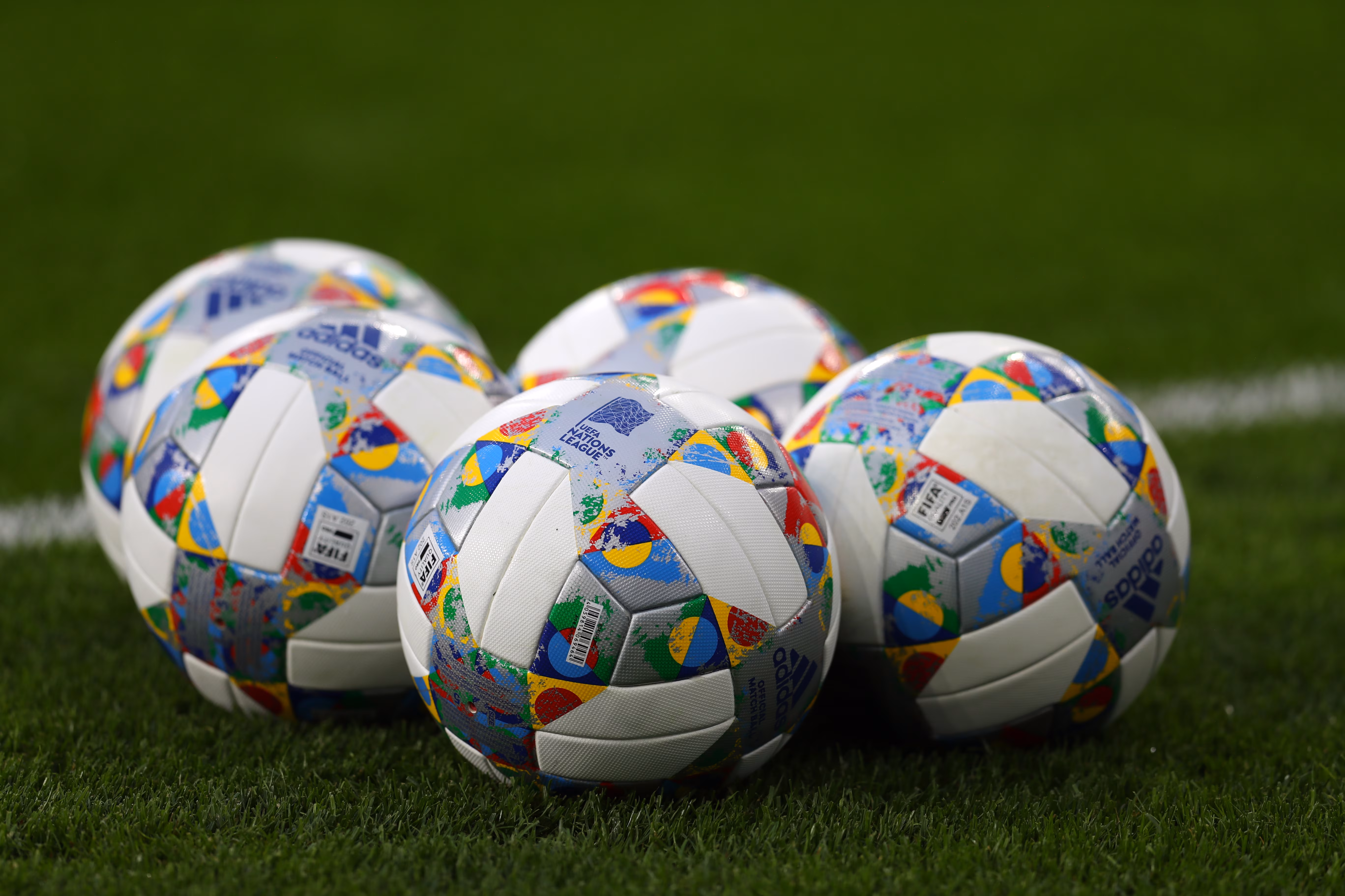 CARDIFF, WALES - SEPTEMBER 06: The Adidas match ball with the competition logo is seen prior to the UEFA Nations League B group four match between Wales and Republic of Ireland at Cardiff City Stadium on September 6, 2018 in Cardiff, United Kingdom. (Photo by Catherine Ivill/Getty Images)