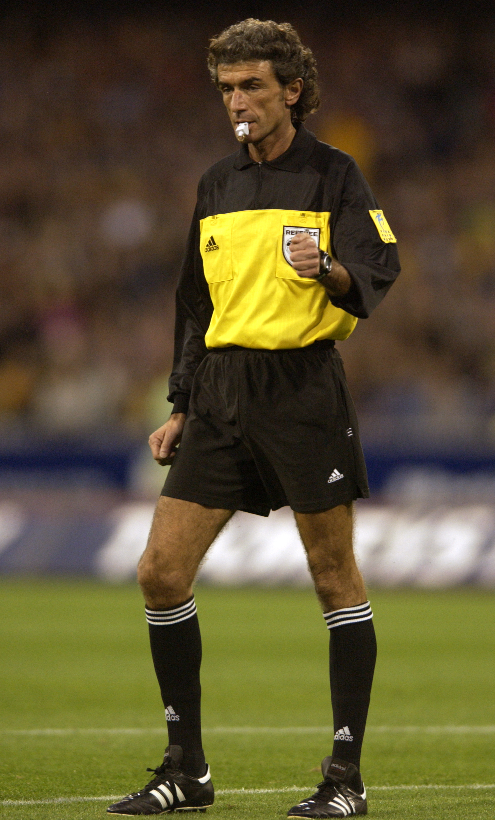 20 Nov 2001: Referee Graziano Cesari of Italy in action during the World Cup Qualifier between Australia and Uruguay, played at the Melbourne Cricket Ground in Melbourne, Australia. Australia defeated Uruguay 1-0. DIGITAL IMAGE Mandatory Credit: Robert Cianflone/ALLSPORT