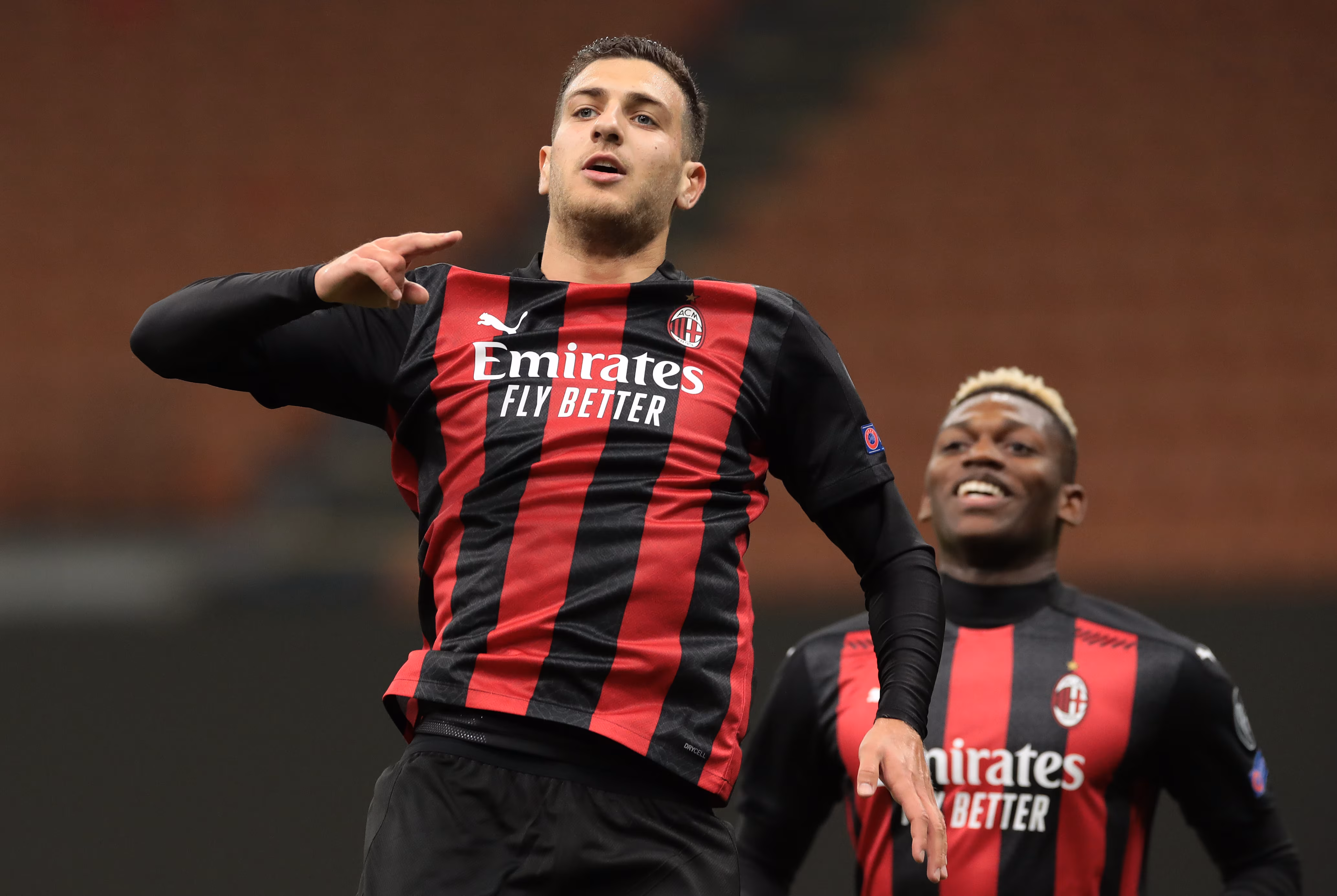 MILAN, ITALY - OCTOBER 29: Diogo Dalot of AC Milan celebrates after scoring the second goal of his team during the UEFA Europa League Group H stage match between AC Milan and AC Sparta Praha at San Siro Stadium on October 29, 2020 in Milan, Italy. (Photo by Emilio Andreoli/Getty Images)