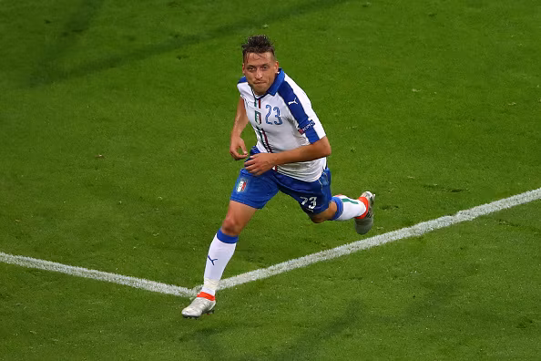LYON, FRANCE - JUNE 13: Emanuele Giaccherini of Italy celebrates scoring his team's first goal during the UEFA EURO 2016 Group E match between Belgium and Italy at Stade des Lumieres on June 13, 2016 in Lyon, France. (Photo by Clive Brunskill/Getty Images)