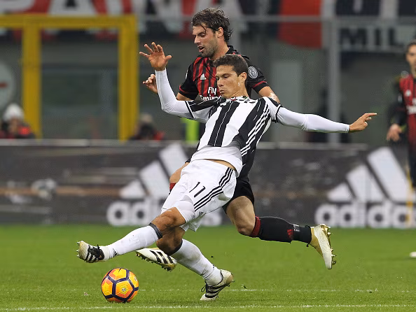 MILAN, ITALY - OCTOBER 22: Anderson Hernanes of Juventus FC is challenged by Andrea Poli (back) of AC Milan during the Serie A match between AC Milan and Juventus FC at Stadio Giuseppe Meazza on October 22, 2016 in Milan, Italy. (Photo by Marco Luzzani/Getty Images)