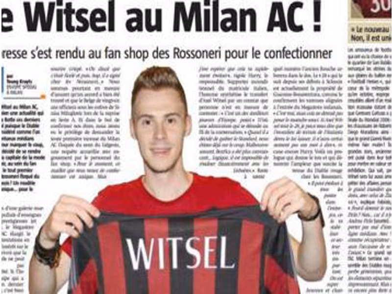 BELGIO – Con l’affare Bertolacci in dirittura d’arrivo continua l’inseguimento del Milan per il colpo grosso a centrocampo. L’arrivo eventuale del giocatore giallorosso a 20 milioni non escluderebbe infatti l’acquisto di un big di cui si è parlato negli scorsi giorni. Direttamente dal Belgio, di preciso il quotidiano Sudpresse, rilanciano la notizia sul continuo pressing del Milan per Axel Witsel. Spunta infatti una foto di un commesso nell’Official Store del Milan con una maglia rossonera su cui campeggiava il nome del giocatore dello Zenit.