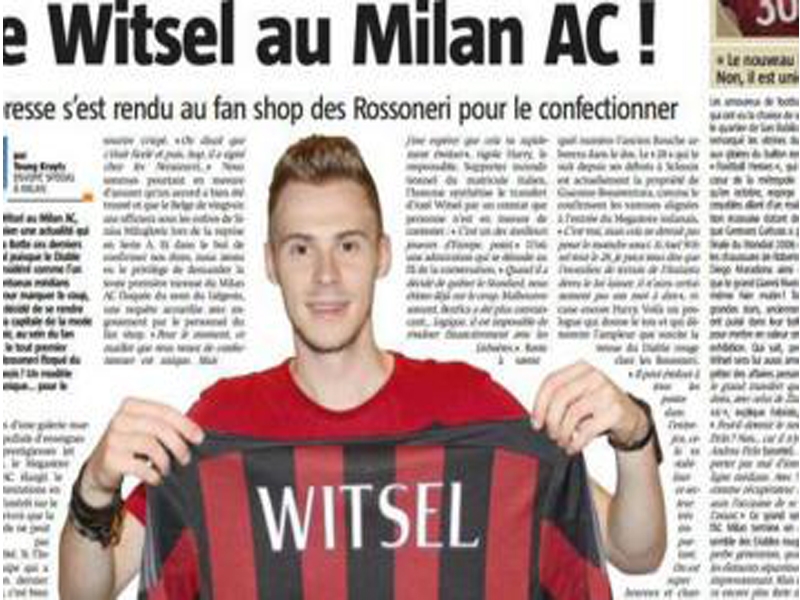 BELGIO – Con l’affare Bertolacci in dirittura d’arrivo continua l’inseguimento del Milan per il colpo grosso a centrocampo. L’arrivo eventuale del giocatore giallorosso a 20 milioni non escluderebbe infatti l’acquisto di un big di cui si è parlato negli scorsi giorni. Direttamente dal Belgio, di preciso il quotidiano Sudpresse, rilanciano la notizia sul continuo pressing del Milan per Axel Witsel. Spunta infatti una foto di un commesso nell’Official Store del Milan con una maglia rossonera su cui campeggiava il nome del giocatore dello Zenit.