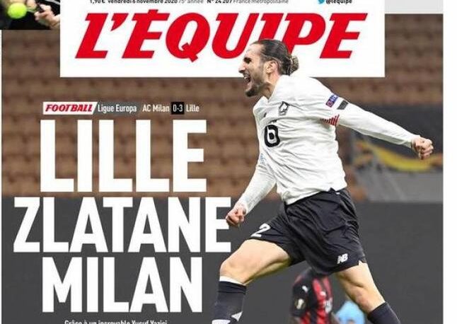 MILANO – La prima pagina de L’Equipe, testata sportiva francese, celebra la vittoria del Lille sul Milan nella terza giornata dei gironi di Europa League con il titolo “Lille zlatane Milan”, gioco di parole per intendere che i francesi abbiano “zlatanizzato” i rossoneri.
