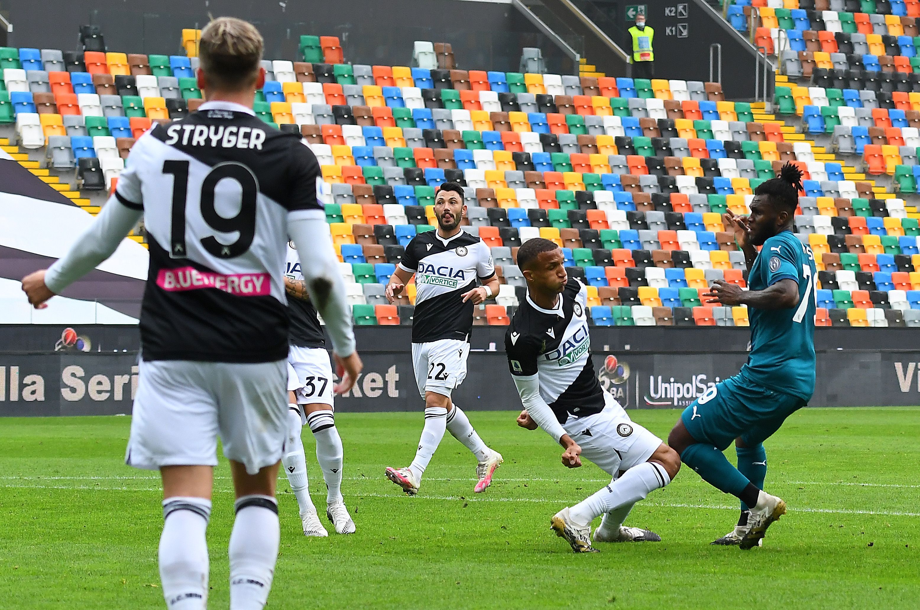 UDINE, ITALY - NOVEMBER 01: Frank Kessie of AC Milan scores the opening goal during the Serie A match between Udinese Calcio and AC Milan at Dacia Arena on November 01, 2020 in Udine, Italy. (Photo by Alessandro Sabattini/Getty Images)