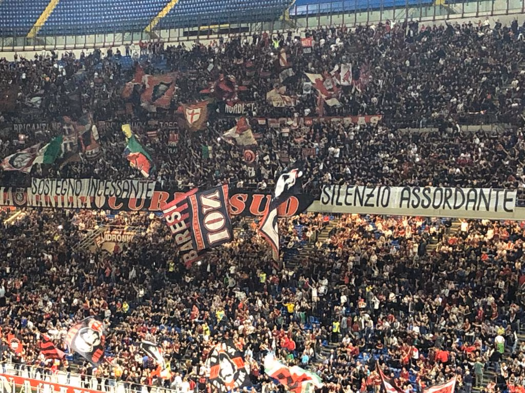 MILANO – Non è soddisfatto il pubblico rossonero dopo le due sconfitte consecutive della squadra di Giampaolo nel derby e a Torino. Sei punti in cinque partite e una classifica che al momento piange, con la sfida alla Fiorentina fondamentale per riprendere il passo. Non convince pienamente il rendimento della squadra, come dimostra anche l’accoglienza data dai tifosi all’inizio della partita. Alla lettura delle formazioni, una buona parte di San Siro ha infatti fischiato Marco Giampaolo, ritenuto forse il principale colpevole delle difficoltà rossonere. Oltre ai fischi, in Curva è apparso anche un doppio striscione “Silenzio assordante, sostengo incessante”