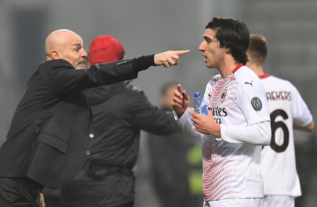REGGIO NELL’EMILIA, ITALY – DECEMBER 20: Sandro Tonali of AC Milan competes for the ball with Junior Traorè of US Sassuolo during the Serie A match between US Sassuolo and AC Milan at Mapei Stadium – Città del Tricolore on December 20, 2020 in Reggio nell’Emilia, Italy. (Photo by Alessandro Sabattini/Getty Images)