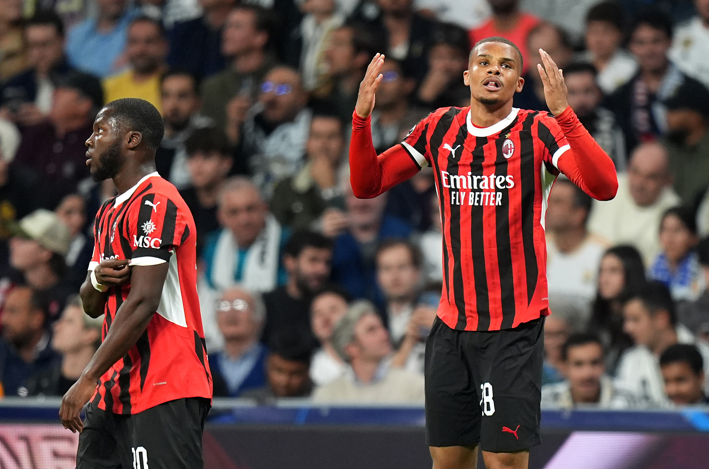 MADRID, SPAIN - NOVEMBER 05: Malick Thiaw of AC Milan celebrates scoring his team's first goal during the UEFA Champions League 2024/25 League Phase MD4 match between Real Madrid C.F. and AC Milan at Estadio Santiago Bernabeu on November 05, 2024 in Madrid, Spain. (Photo by Angel Martinez/Getty Images)