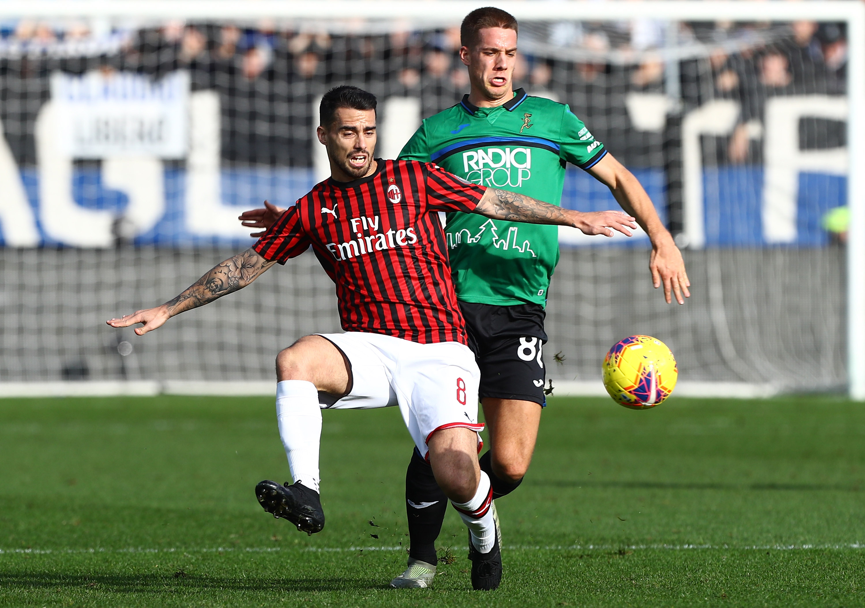 Suso, esterno del Milan, contrastato da Pasalic dell'Atalanta.