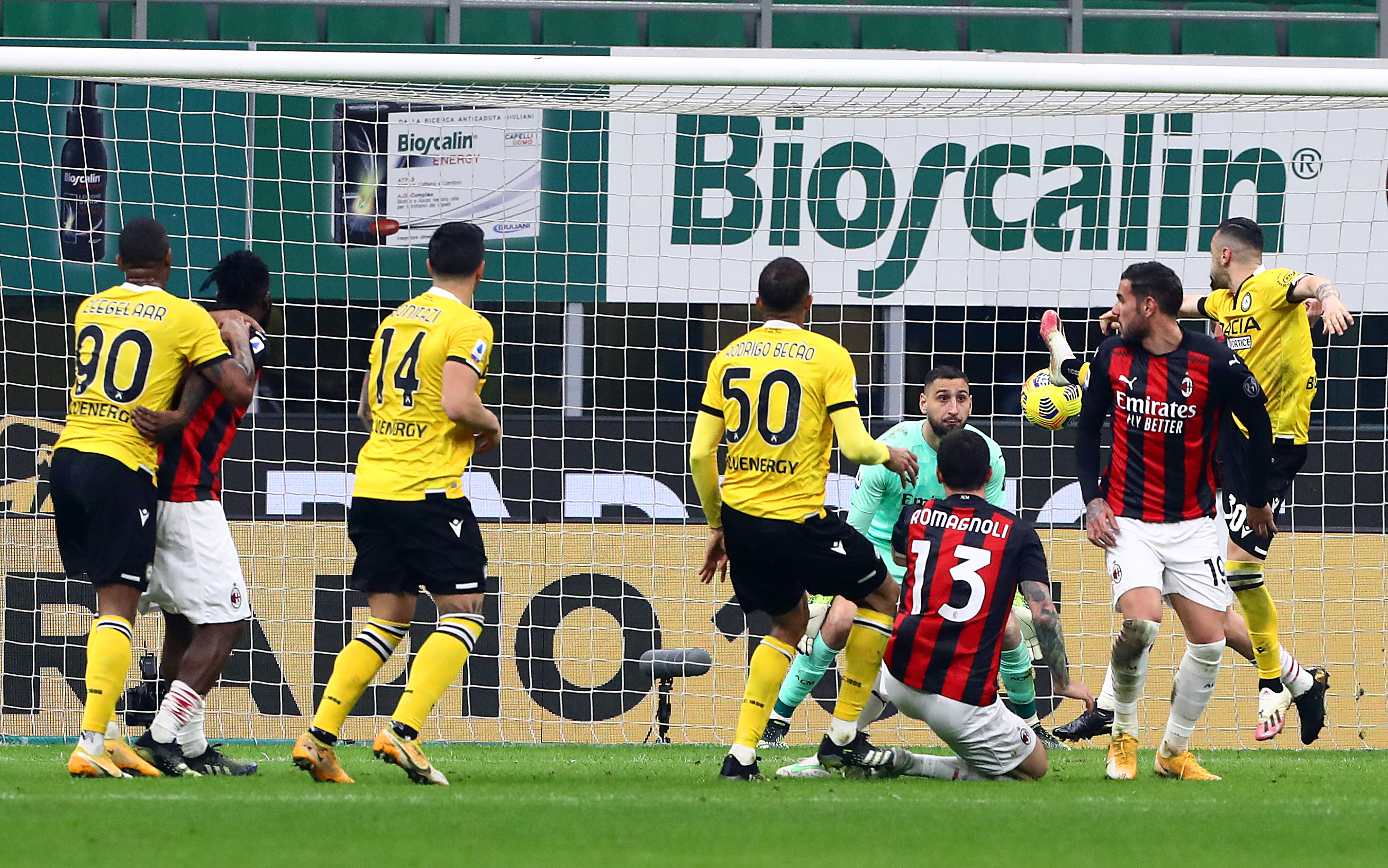 MILANO – Il Milan esce con un solo punto dalla sfida contro l’Udinese: è terminato, infatti, 1-1 il match valido per la 25esima giornata del campionato di Serie A; a segno Rodrigo Becao al 68esimo per i friulani e Franck Kessie al 97esimo per i rossoneri, su un calcio di rigore (netto) concesso dall’arbitro Massa per tocco di mano di Stryger Larsen. La squadra di Stefano Pioli resta, dunque, al secondo posto in classifica con 53 punti, ma vede assottigliarsi il vantaggio su Juventus e Atalanta a soli 4 punti e potrebbe vedere allungarsi quello sull’Inter, impegnata stasera a Parma.