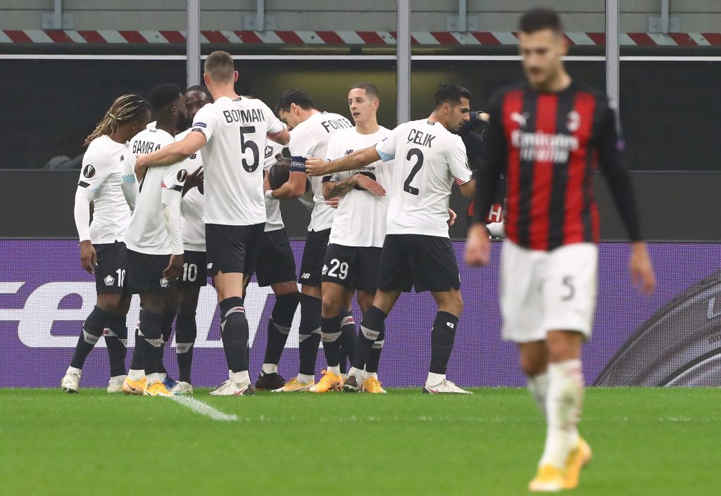MILANO – Il Milan ha perso per 0 a 3 la terza partita della fase a gironi di Europa League contro il Lille; a san Siro decisiva la tripletta del turco Yazici: rigore nel primo tempo, goal da fuori su errore di Donnarumma e tris in contropiede nella ripresa. I francesi scavalcano così il Milan in classifica: francesi a 7 punti, rossoneri a 6.