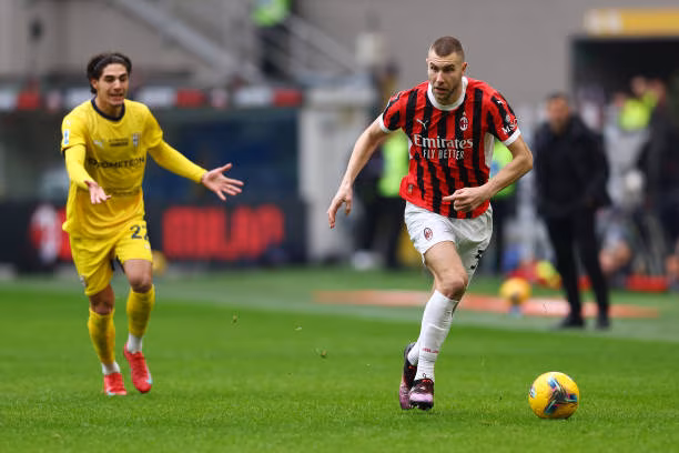 MILAN, ITALY - JANUARY 26: Strahinja Pavlovic of AC Milan in action during the Serie A match between AC Milan and Parma at Stadio Giuseppe Meazza on January 26, 2025 in Milan, Italy. (Photo by Francesco Scaccianoce/Getty Images)