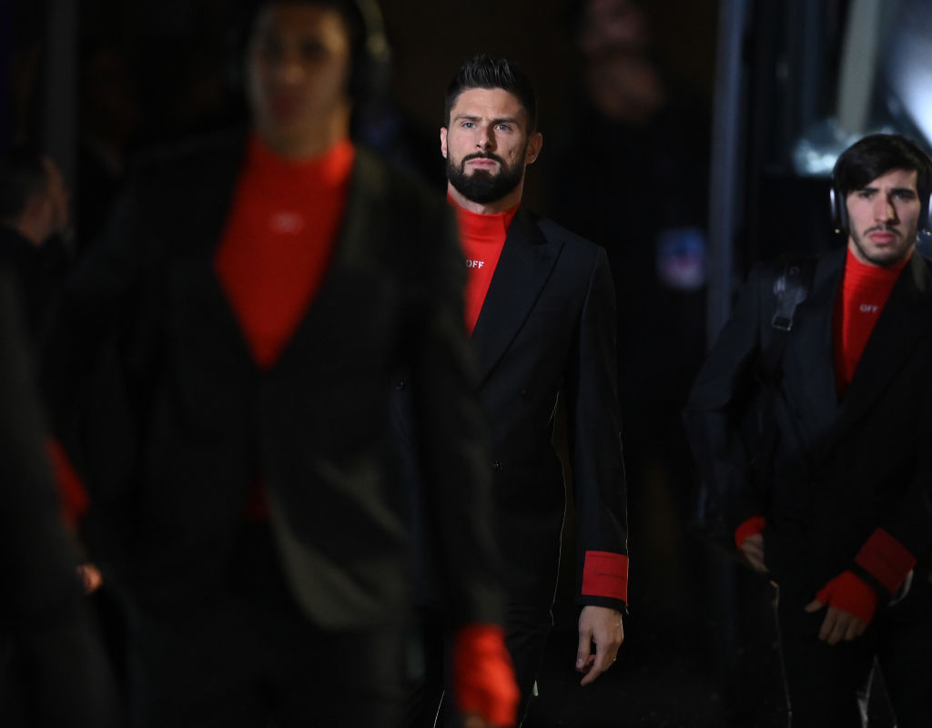ROME, ITALY - JANUARY 24: Olivier Giroud of AC Milan arrives before the Serie A match between SS Lazio and AC MIlan at Stadio Olimpico on January 24, 2023 in Rome, Italy. (Photo by Claudio Villa/AC Milan via Getty Images)