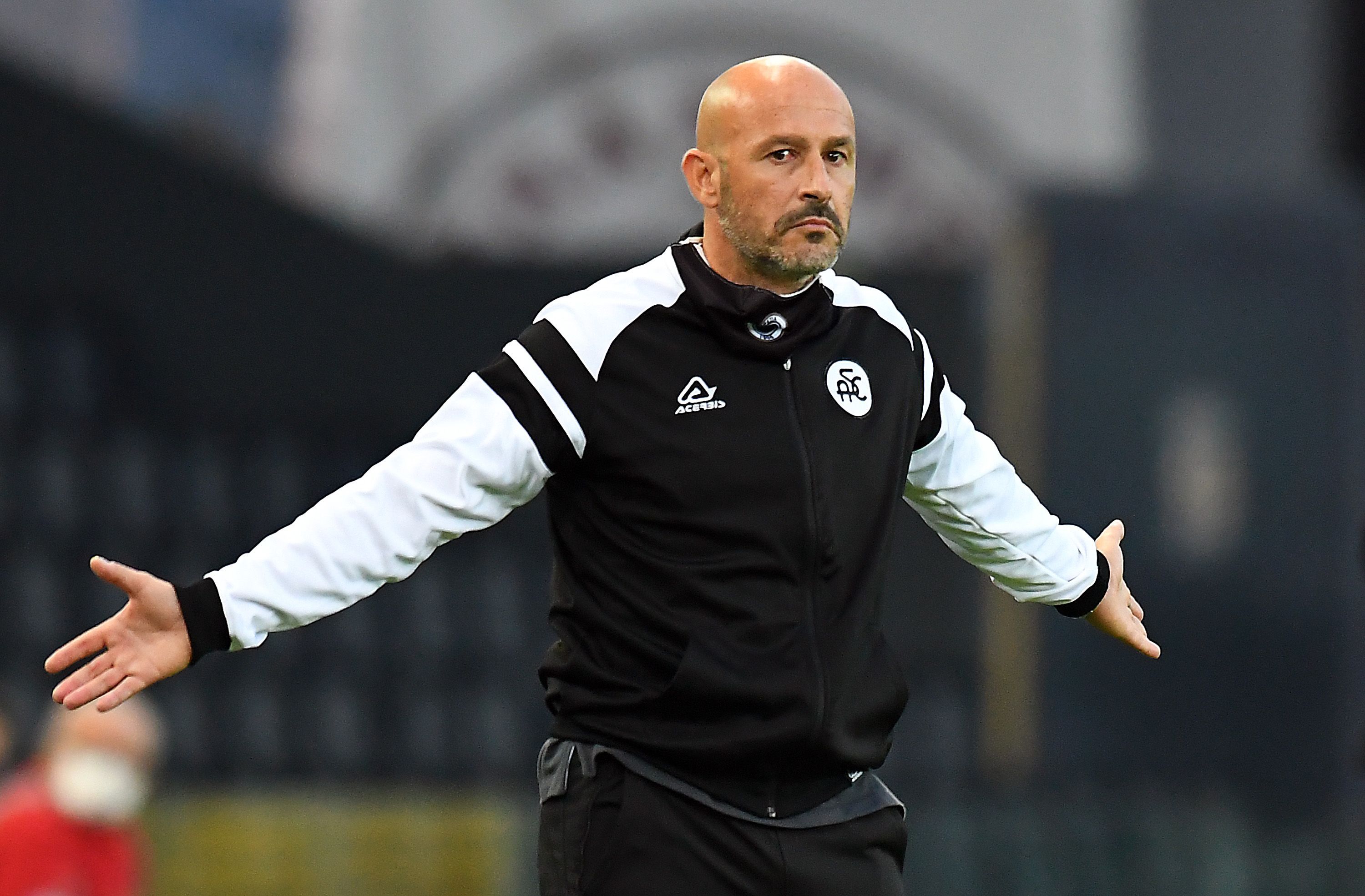 UDINE, ITALY - SEPTEMBER 30: Vincenzo Italiano head coach of Spezia Calcio reacts during the Serie A match between Udinese Calcio and Spezia Calcio at Dacia Arena on September 30, 2020 in Udine, Italy. (Photo by Alessandro Sabattini/Getty Images)