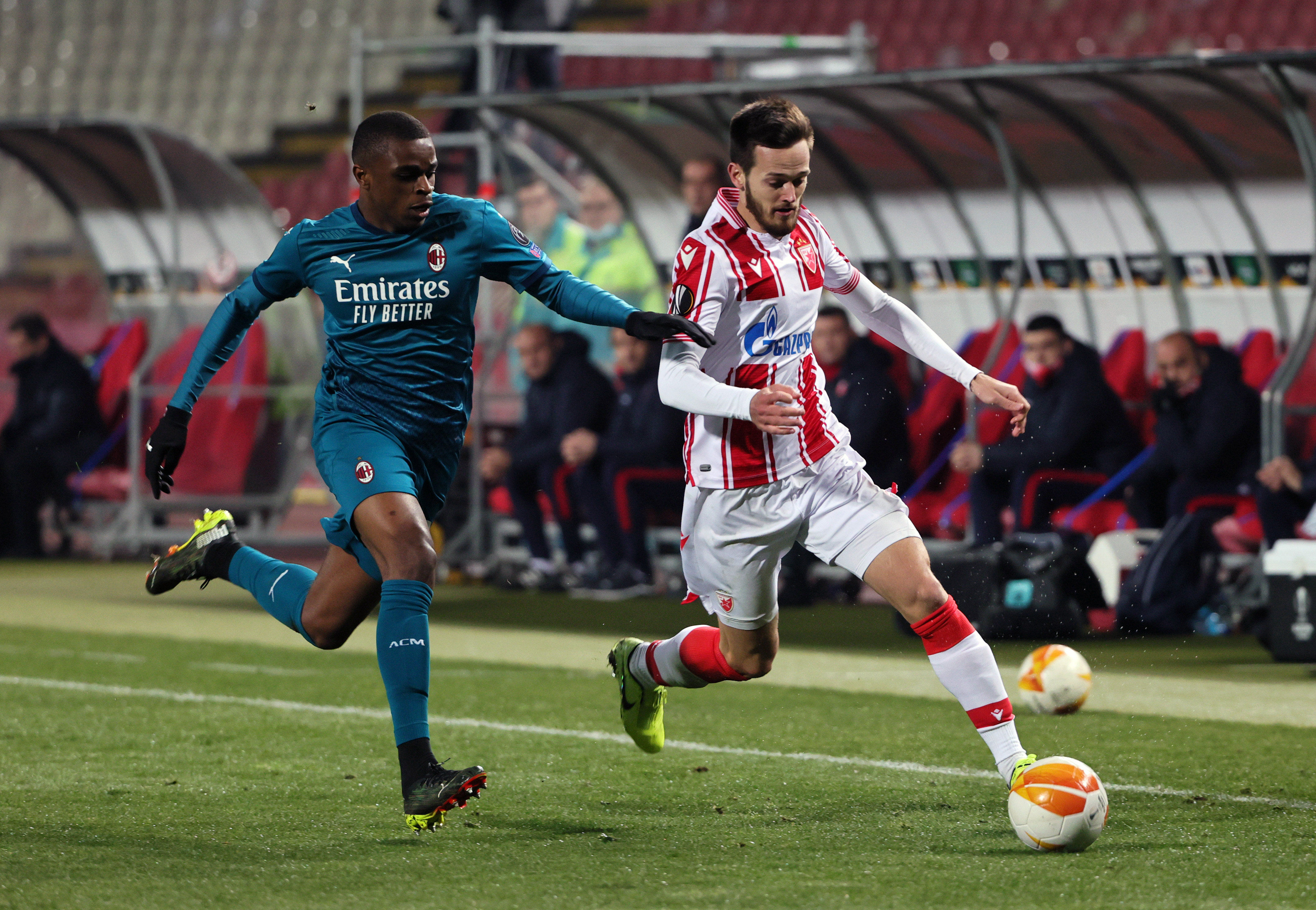 Kalulu del Milan a contrasto con Ivanic della Stella Rossa