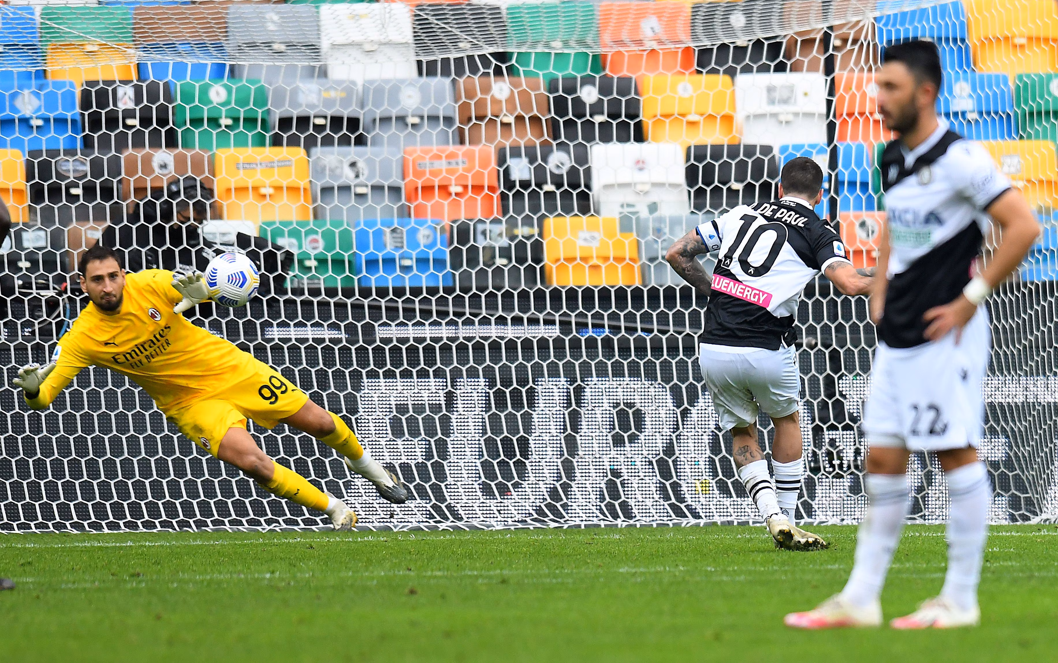 UDINE, ITALY - NOVEMBER 01: Rodrigo de Paul of Udinese Calcio scores the 1-1 goal during the Serie A match between Udinese Calcio and AC Milan at Dacia Arena on November 01, 2020 in Udine, Italy. (Photo by Alessandro Sabattini/Getty Images)