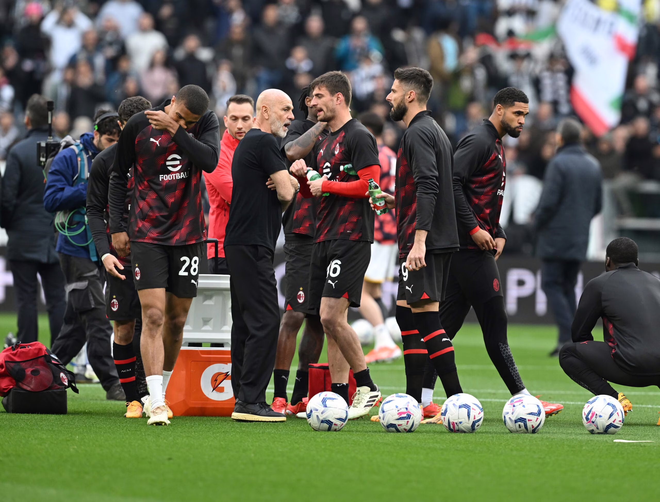TURIN, ITALY - APRIL 27: Head coach of AC Milan Stefano Pioli reacts before the Serie A TIM match between Juventus and AC Milan at Allianz Stadium on April 27, 2024 in Turin, Italy. (Photo by Claudio Villa/AC Milan via Getty Images) (Photo by Claudio Villa/AC Milan via Getty Images)
