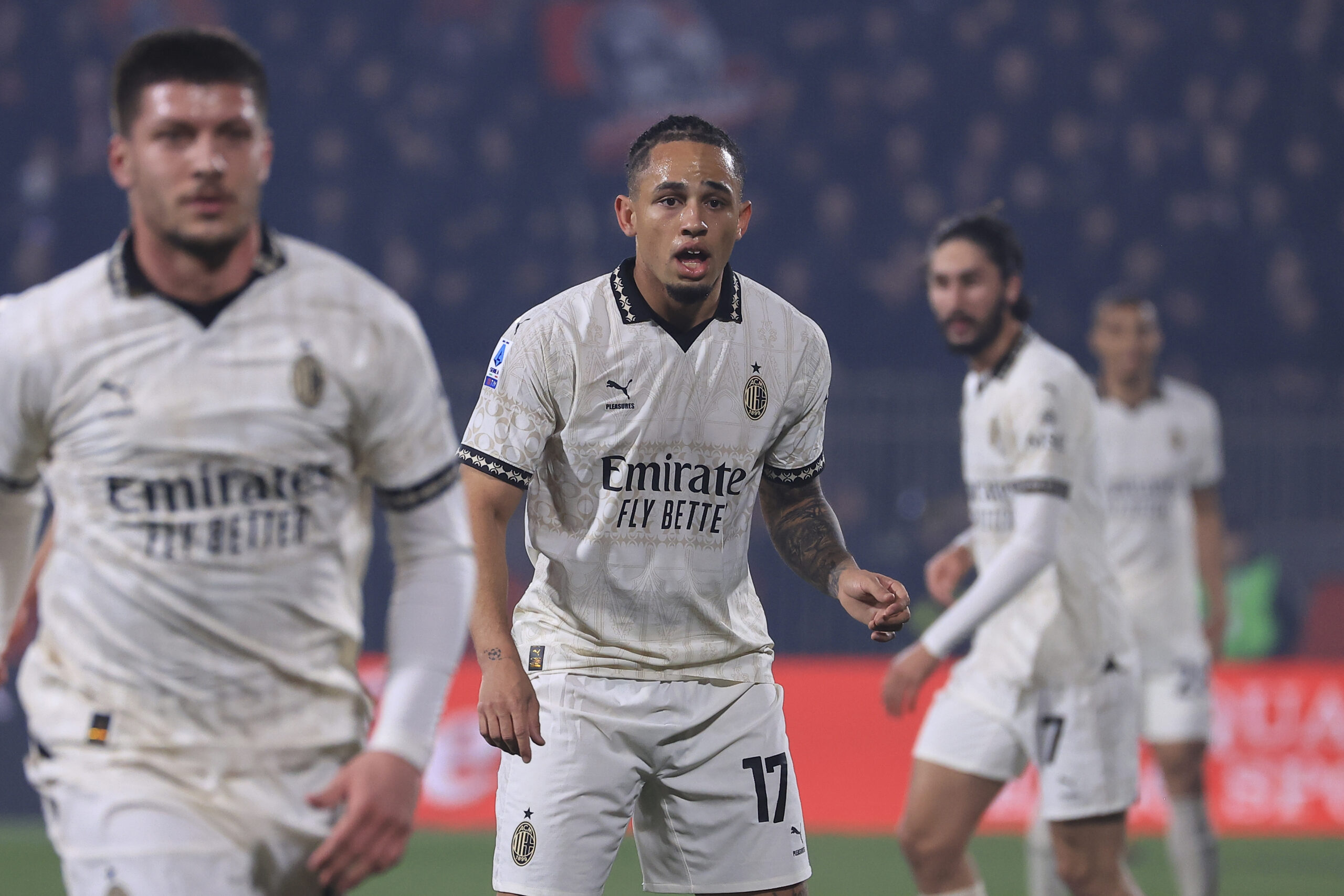 MONZA, ITALY - FEBRUARY 18: Noah Okafor of AC Milan looks on during the Serie A TIM match between AC Monza and AC Milan at U-Power Stadium on February 18, 2024 in Monza, Italy. (Photo by Giuseppe Cottini/AC Milan via Getty Images)