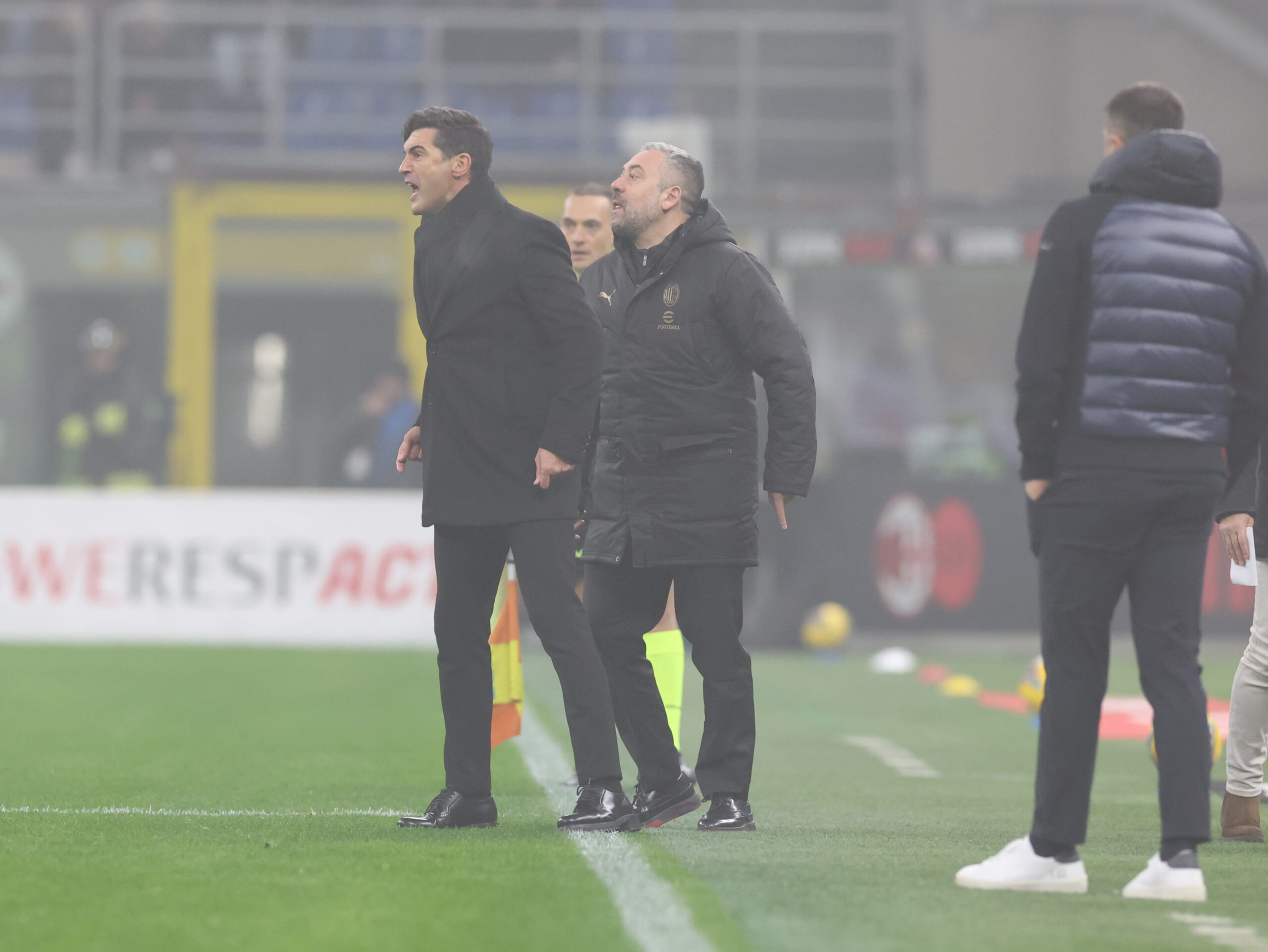 MILAN, ITALY - NOVEMBER 30: Head coach of AC Milan Paulo Fonseca reacts during the Serie A match between Milan and Empoli at Stadio Giuseppe Meazza on November 30, 2024 in Milan, Italy. (Photo by Claudio Villa/AC Milan via Getty Images)
