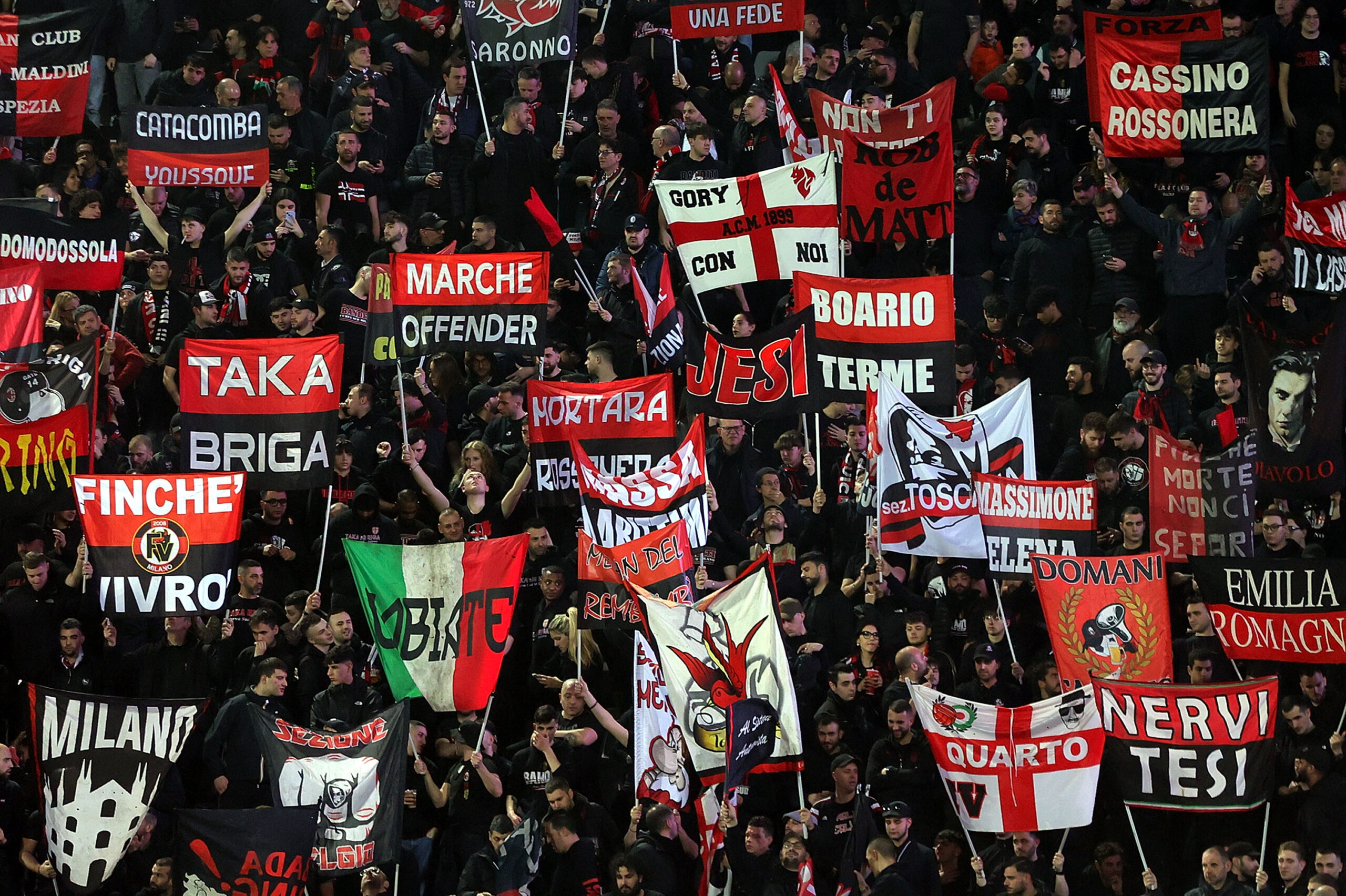 FLORENCE, ITALY - MARCH 30: Fans of AC Milan during the Serie A TIM match between ACF Fiorentina and AC Milan - Serie A TIM at Stadio Artemio Franchi on March 30, 2024 in Florence, Italy.(Photo by Gabriele Maltinti/Getty Images)