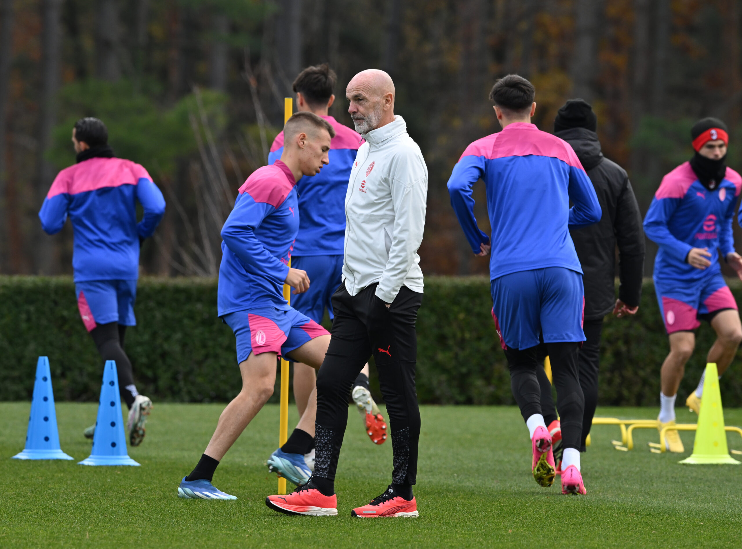 CAIRATE, ITALY - NOVEMBER 27: Head coach AC Milan Stefano Pioli looks on during a AC Milan training session at Milanello on November 27, 2023 in Cairate, Italy. (Photo by Claudio Villa/AC Milan via Getty Images)