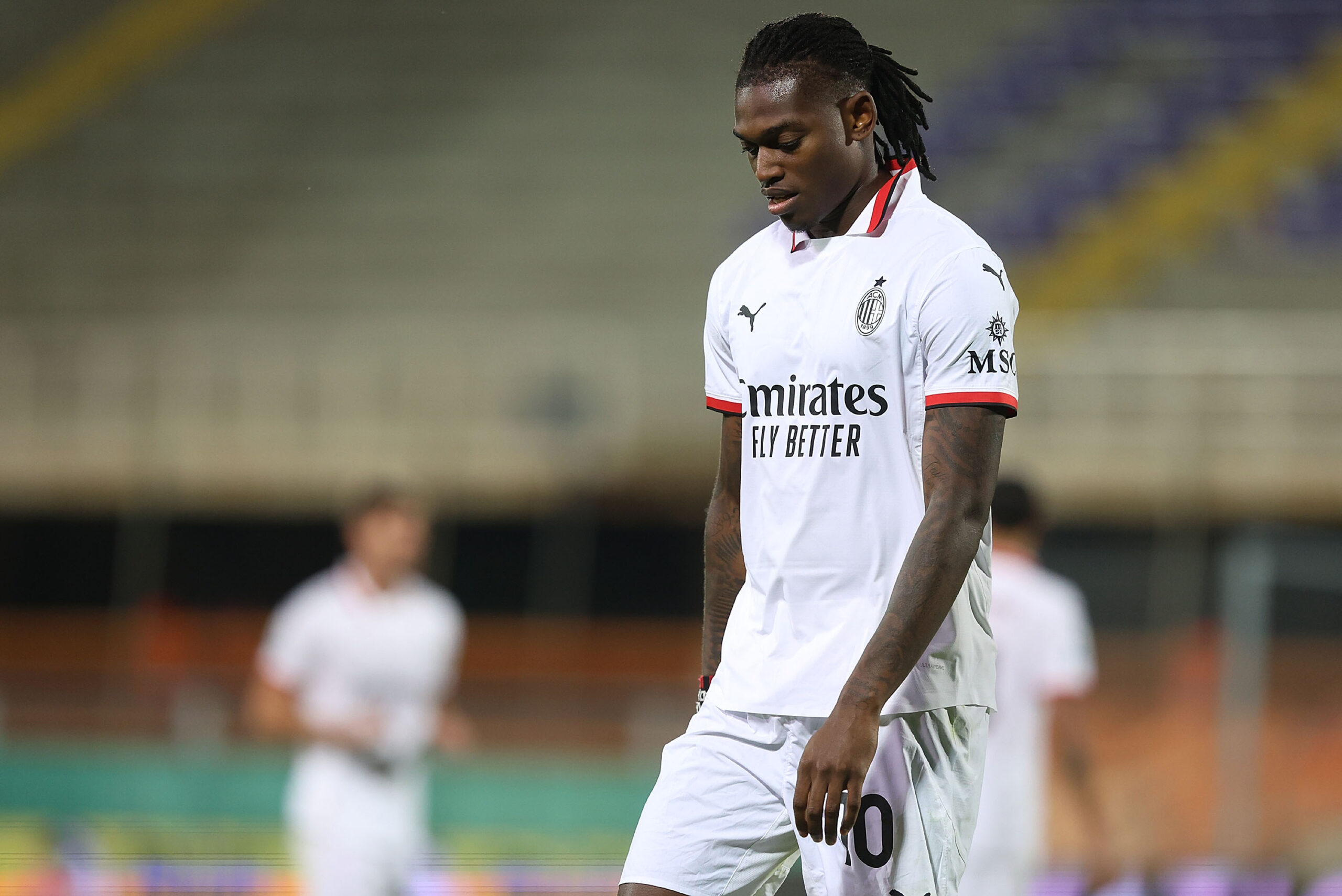 FLORENCE, ITALY - OCTOBER 6: Rafael Leao of AC Milan shows hid dejection during the Serie match between Fiorentina and Milan at Stadio Artemio Franchi on October 6, 2024 in Florence, Italy. (Photo by Gabriele Maltinti/Getty Images)