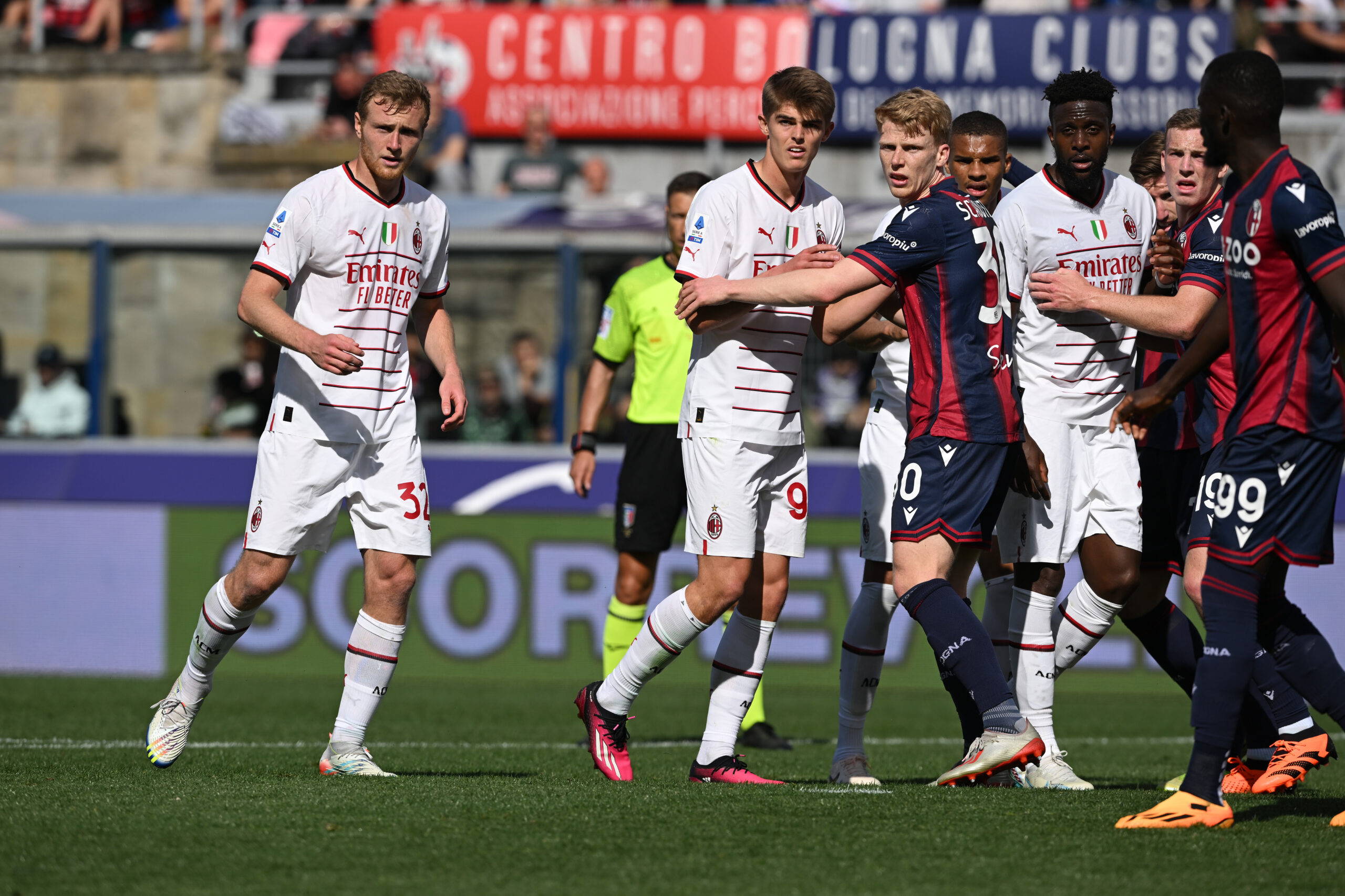 BOLOGNA, ITALY - APRIL 15: Charles De Ketelaere of AC Milan in action during the Serie A match between Bologna FC and AC Milan at Stadio Renato Dall'Ara on April 15, 2023 in Bologna, Italy. (Photo by Claudio Villa/AC Milan via Getty Images)