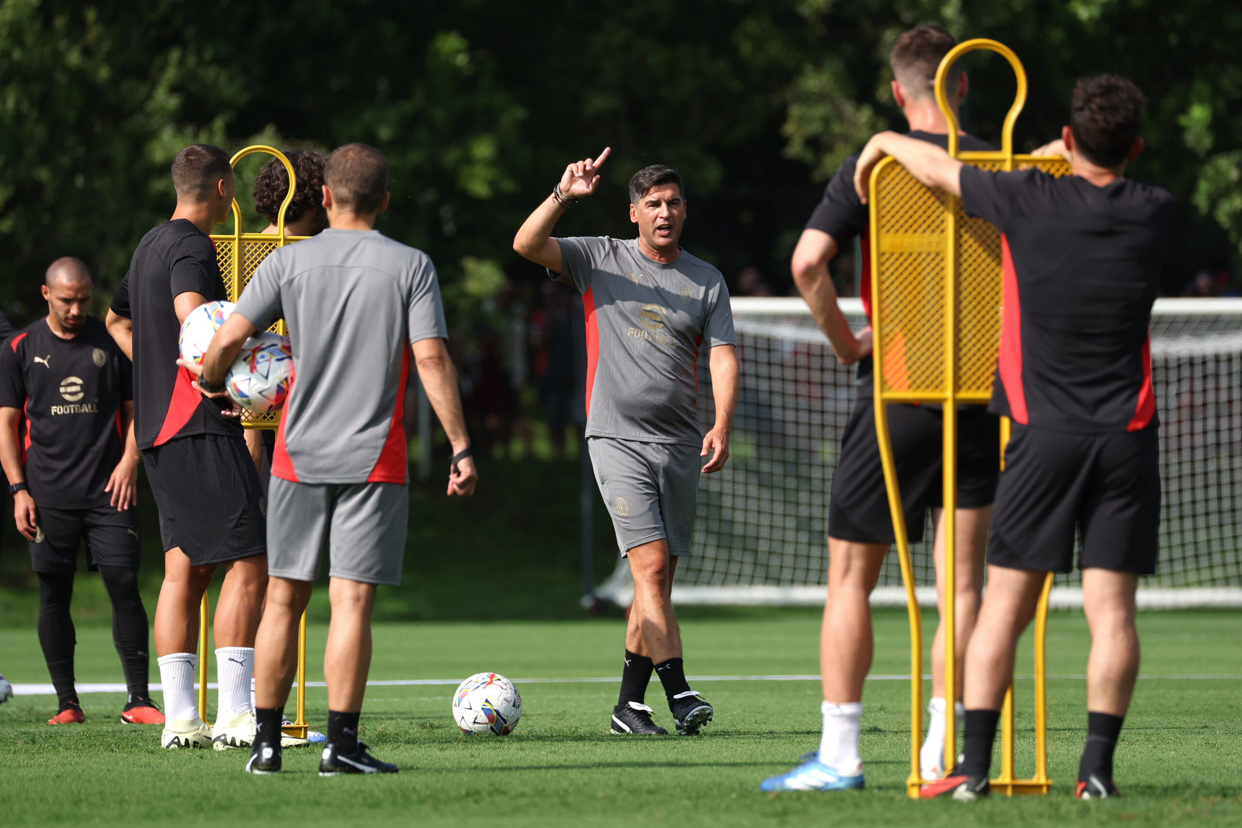 CAIRATE, ITALY - JULY 08: Paulo Fonseca of AC Milan gestures during an AC Milan Training Session at Milanello on July 08, 2024 in Cairate, Italy. (Photo by Giuseppe Cottini/AC Milan via Getty Images)