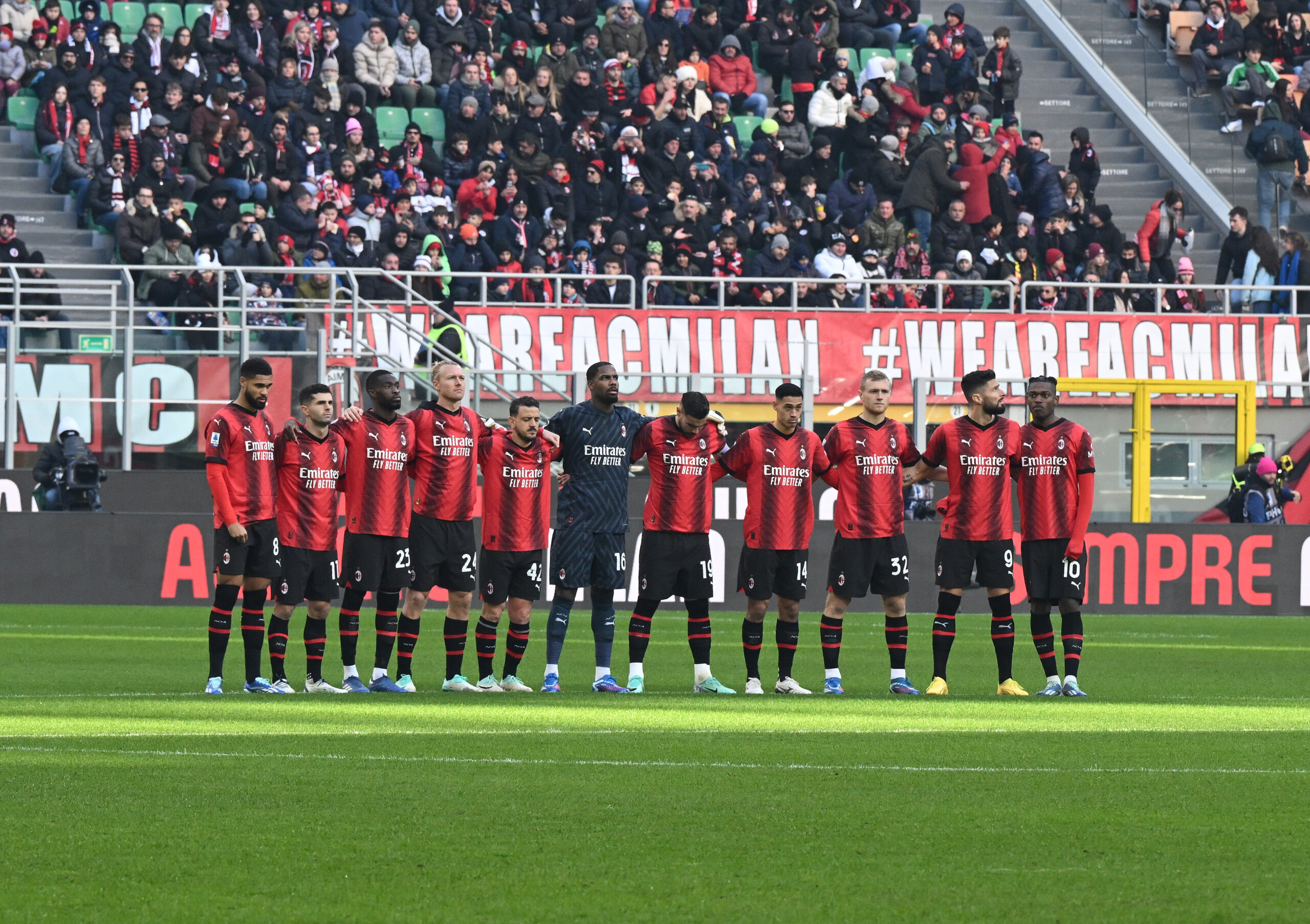 MILAN, ITALY - DECEMBER 17: Players of AC Milan line up prior to the Serie A TIM match between AC Milan and AC Monza at Stadio Giuseppe Meazza on December 17, 2023 in Milan, Italy. (Photo by Claudio Villa/AC Milan via Getty Images)