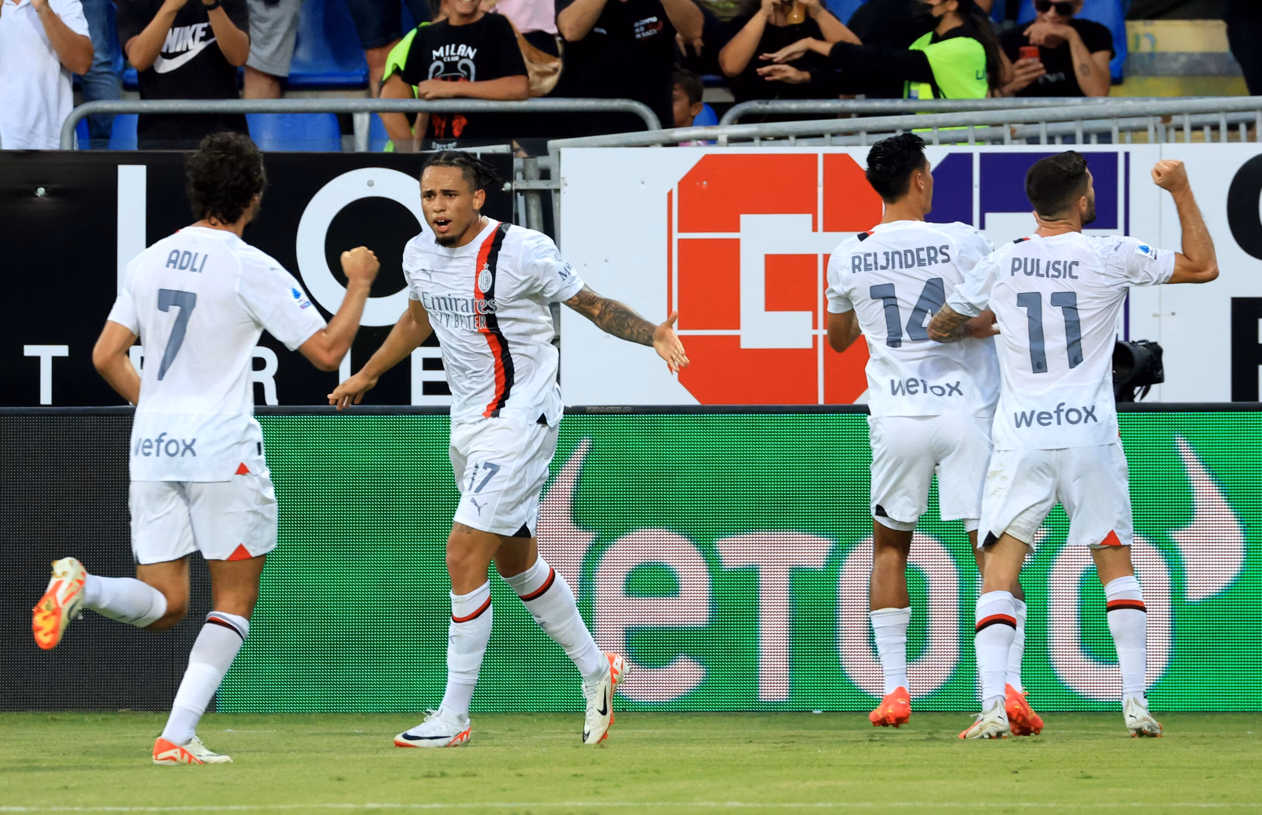 Inizio dai ritmi alti con il Milan che attacca e il Cagliari che riparte in contropiede. La prima occasione è dei rossoneri con Reijnders che tira da posizione defilata e sfiora il palo. Al 9′ altra occasione: bel lancio di Adli per Reijnders che mette in mezzo per Okafor che di testa mette alto sopra la traversa. E’ la squadra di Pioli a fare la partita, con i padroni di casa che si difendono. Il Cagliari si fa vedere al 22′ con un colpo di testa debole di Petagna, facile preda di Sportiello. Il Milan continua a fare la partita, con diverse azioni e cross su cui la squadra rossoblù fa muro. Al 27′ Okafor può tirare da buona posizione ma la conclusione è debole. Al 29′ però la beffa: Nandez ruba palla ad Adli e serve in area Luvumbo che batte un incolpevole Sportiello con un tiro potente e preciso. Dopo lo shock iniziale il Milan prova a recuperare e ce la fa al 40′: Pulisic mette in mezzo un cross basso su cui Radunovic sbaglia e si avventa Okafor che fa 1-1. Il gol galvanizza i rossoneri che trovano il vantaggio: schema su corner con Adli che batte corto per Reijnders che mette in mezzo forte, trovando la deviazione di Tomori per il 2-1. Vantaggio meritato all’intervallo.
