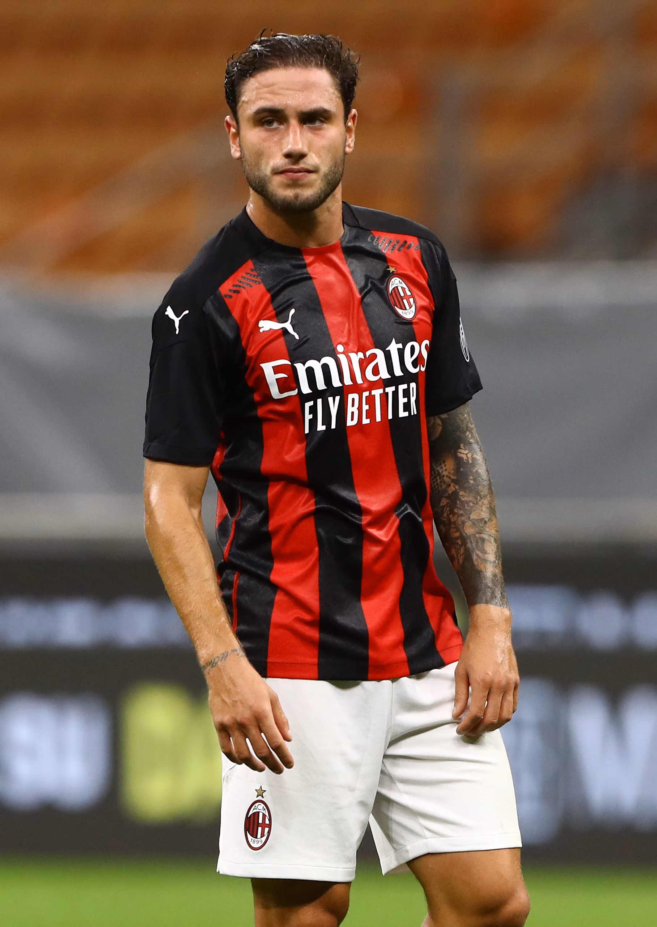 MILAN, ITALY - SEPTEMBER 05: Davide Calabria of AC Milan looks on during the pre-season friendly match between AC Milan and Monza at Stadio Giuseppe Meazza on September 5, 2020 in Milan, Italy. (Photo by Marco Luzzani/Getty Images)