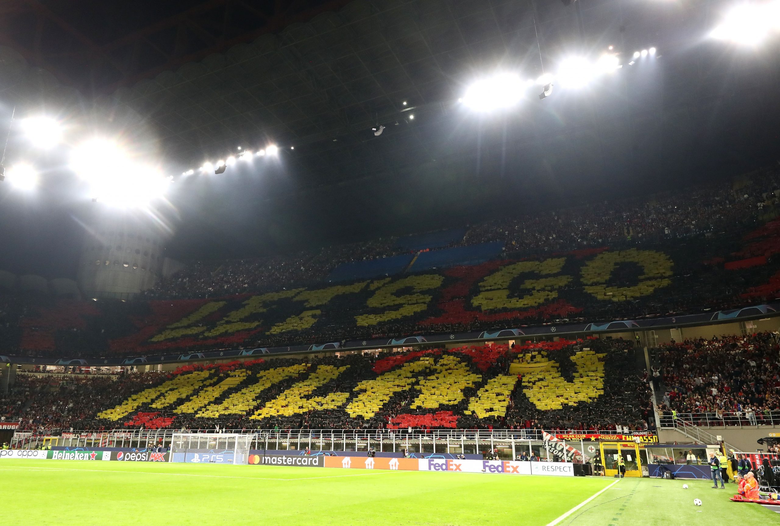 MILAN, ITALY - OCTOBER 11: The AC Milan fans show their support during the UEFA Champions League group E match between AC Milan and Chelsea FC at Giuseppe Meazza Stadium on October 11, 2022 in Milan, Italy. (Photo by Marco Luzzani/Getty Images)