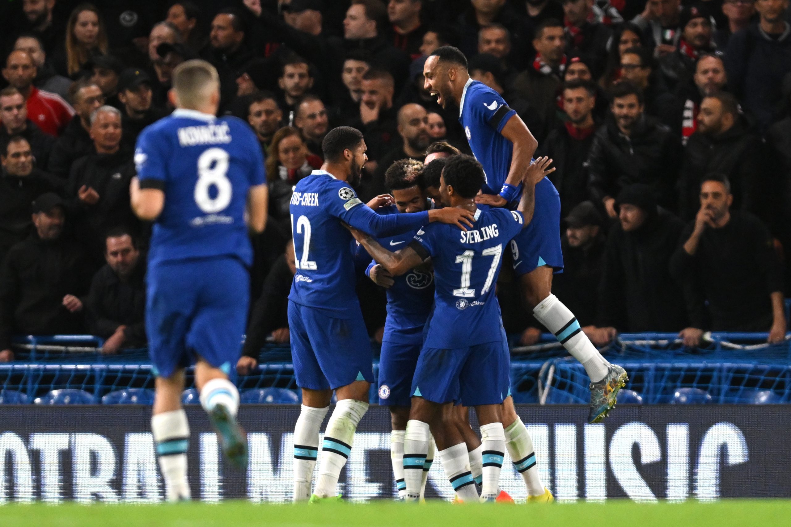 LONDON, ENGLAND - OCTOBER 05: Wesley Fofana of Chelsea celebrates with team mates after scoring their sides first goal during the UEFA Champions League group E match between Chelsea FC and AC Milan at Stamford Bridge on October 05, 2022 in London, England. (Photo by Mike Hewitt/Getty Images)