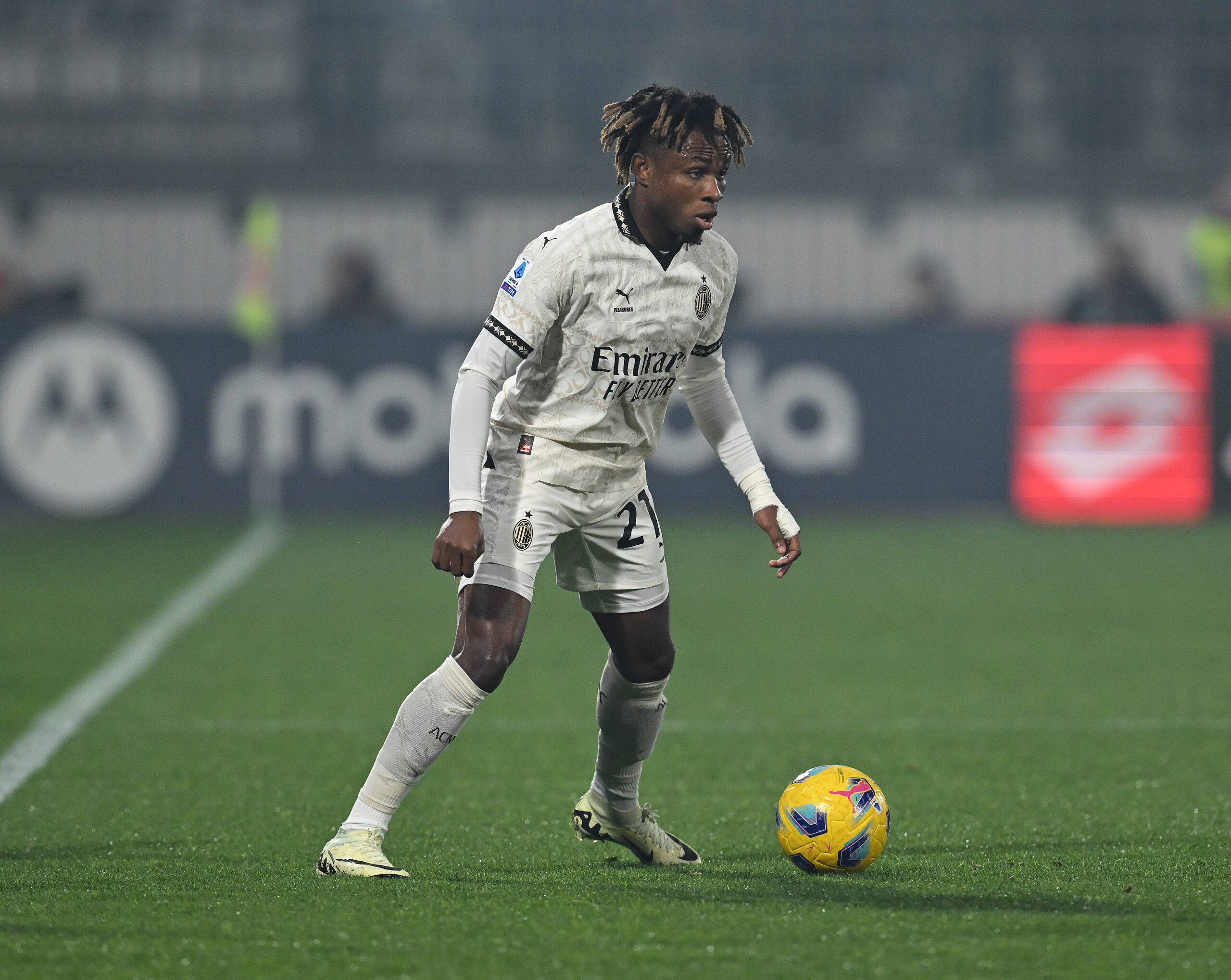 MONZA, ITALY - FEBRUARY 18: Samuel Chukwueze of AC Milan in action during the Serie A TIM match between AC Monza and AC Milan - Serie A TIM at U-Power Stadium on February 18, 2024 in Monza, Italy. (Photo by Claudio Villa/AC Milan via Getty Images)