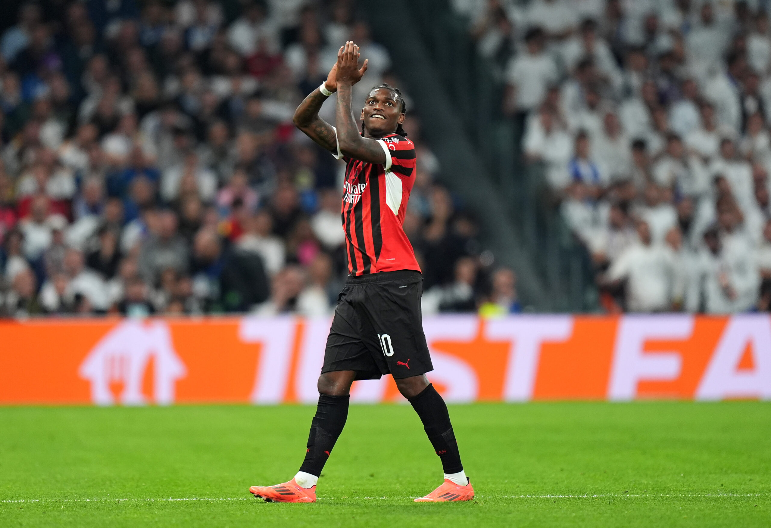 MADRID, SPAIN - NOVEMBER 05: Rafael Leao of AC Milan applauds the crowd during the UEFA Champions League 2024/25 League Phase MD4 match between Real Madrid C.F. and AC Milan at Estadio Santiago Bernabeu on November 05, 2024 in Madrid, Spain. (Photo by Angel Martinez/Getty Images)