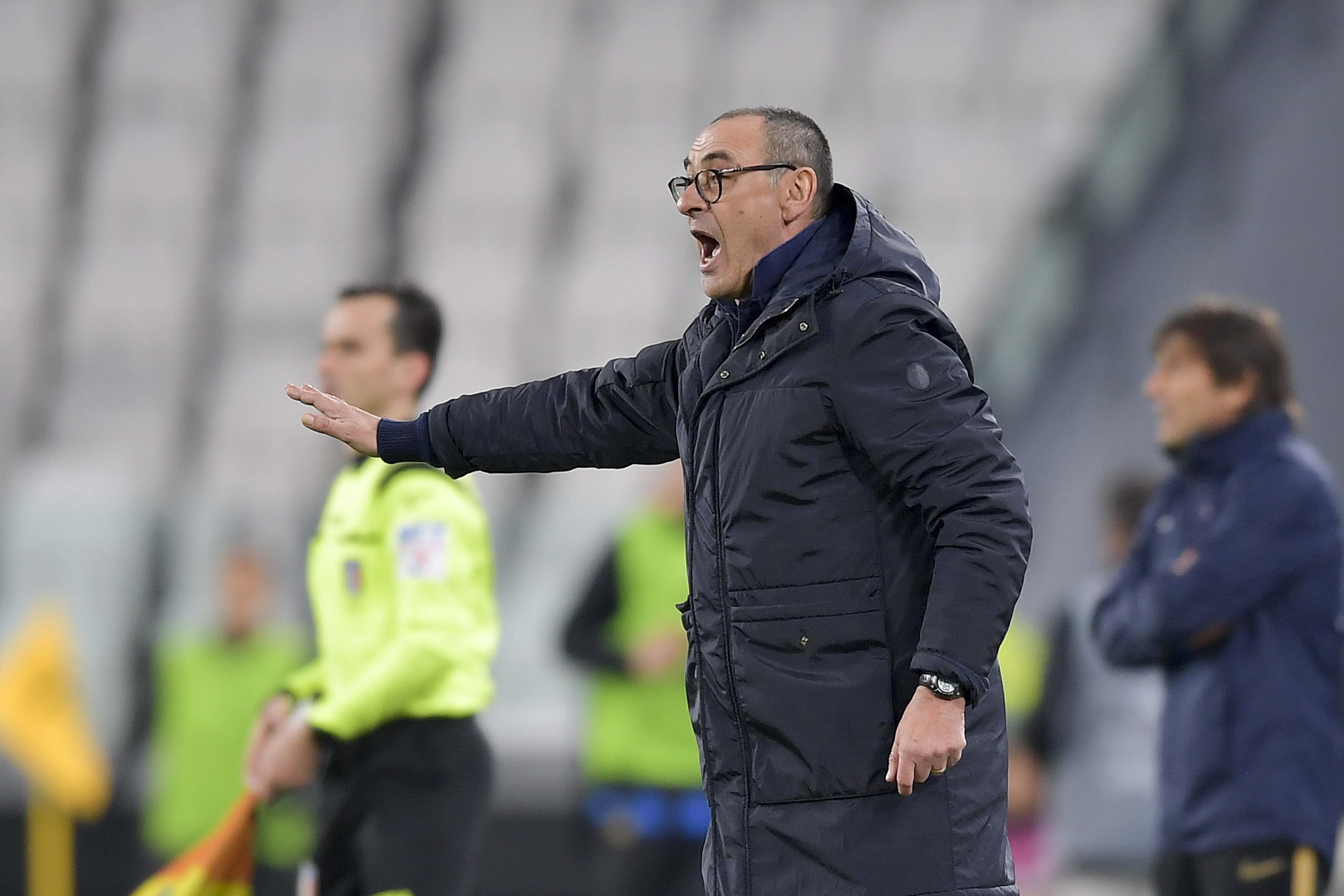 TURIN, ITALY - MARCH 08: head coach of Juventus Maurizio Sarri shouts to his players during the Serie A match between Juventus and FC Internazionale at Allianz Stadium played behind closed doors after rules to limit the spread of Covid-19 have been put in place on March 8, 2020 in Turin, Italy. (Photo by Daniele Badolato - Juventus FC/Juventus FC via Getty Images)