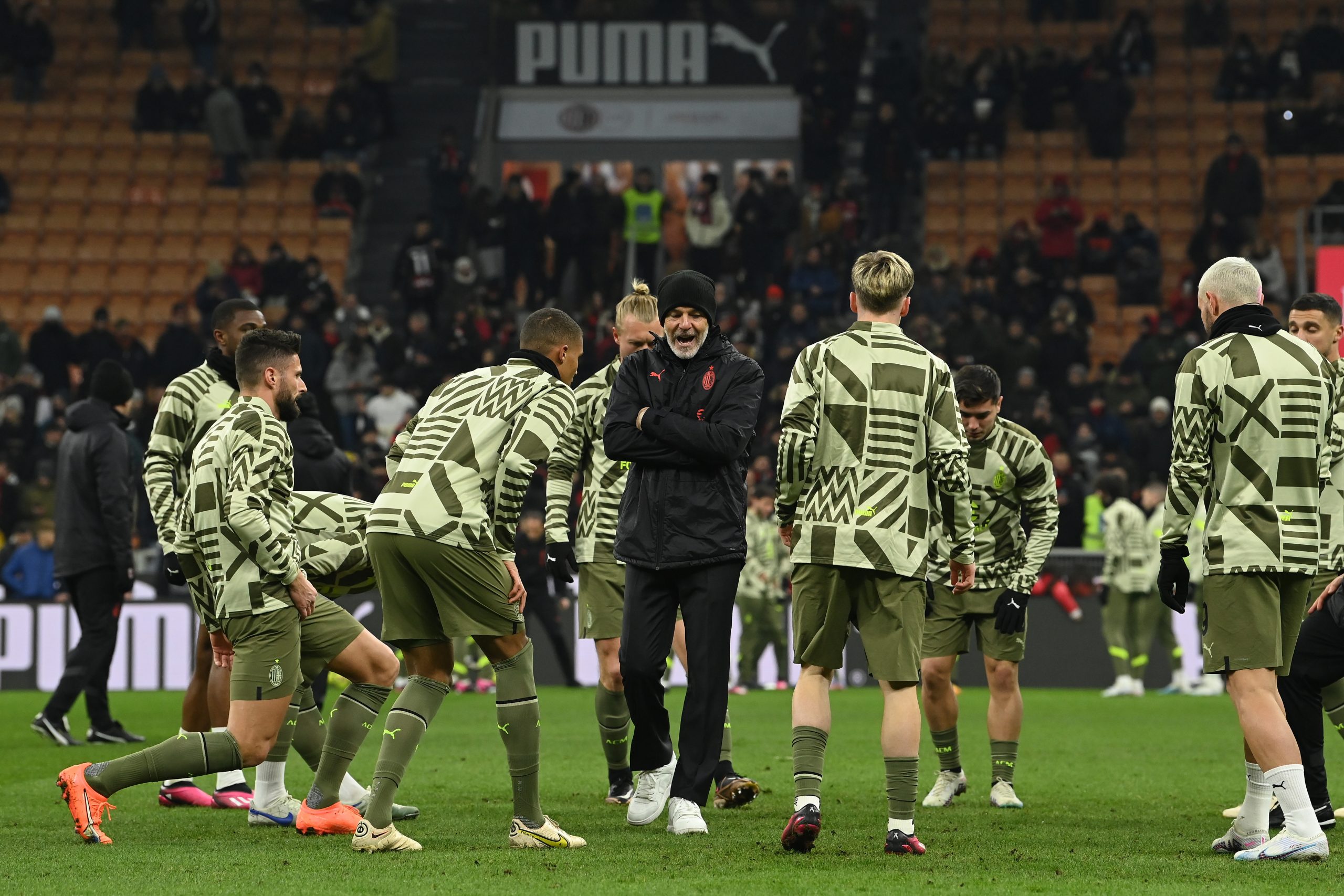 MILAN, ITALY - FEBRUARY 10: Head coach of AC Milan Stefano Pioli react before the Serie A match between AC Milan and Torino FC at Stadio Giuseppe Meazza on February 10, 2023 in Milan, Italy. (Photo by Claudio Villa/AC Milan via Getty Images)