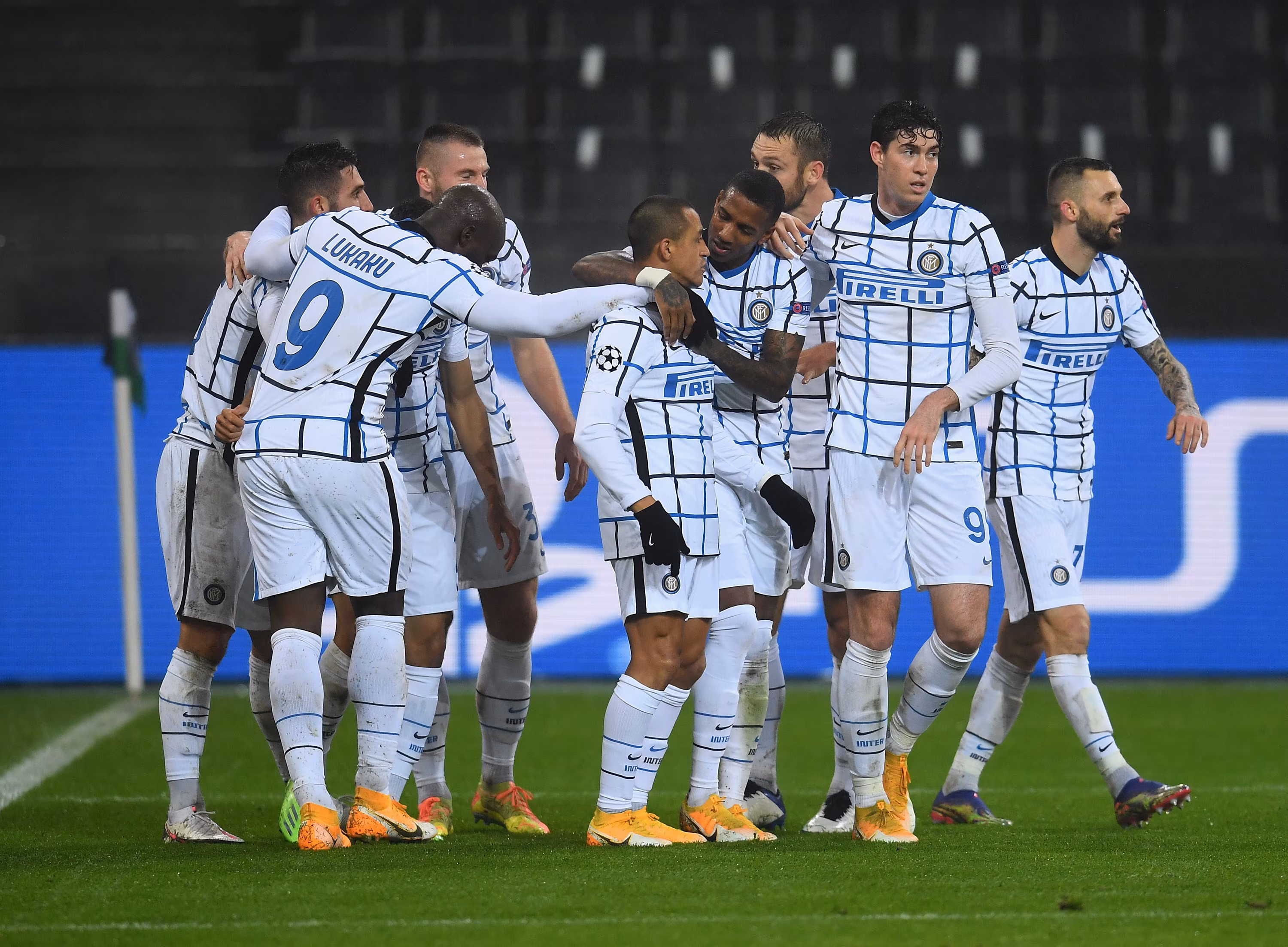 MOENCHENGLADBACH, GERMANY - DECEMBER 01: Romelu Lukaku of FC Internazionale celebrates with team-mates after scoring the goal during the UEFA Champions League Group B stage match between Borussia Moenchengladbach and FC Internazionale at Borussia-Park on December 1, 2020 in Moenchengladbach, Germany. (Photo by Claudio Villa - Inter/Inter via Getty Images)